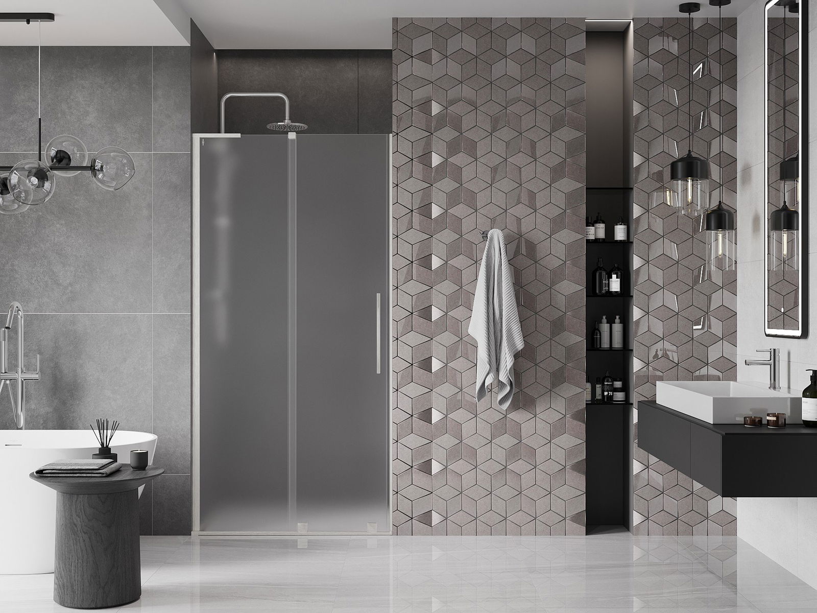 Poręczny i wygodny uchwyt został wykonany ze stali nierdzewnej. Modny kształt w połączeniu z wykończeniem dopasowanym do koloru profili nadaje całości nowoczesnego i stylowego wyglądu, podkreślając estetykę każdej łazienki.