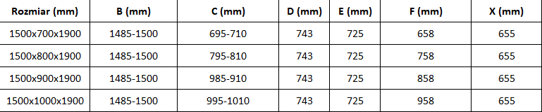 Rozmiar: 150x100 cm (drzwi 150 cm, ścianka 100 cm)