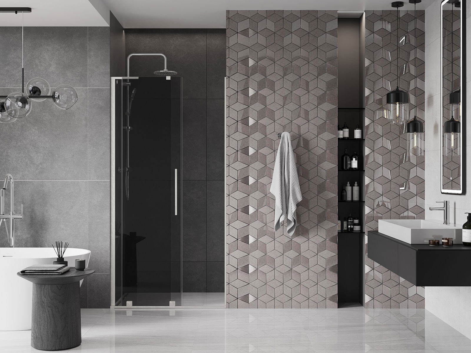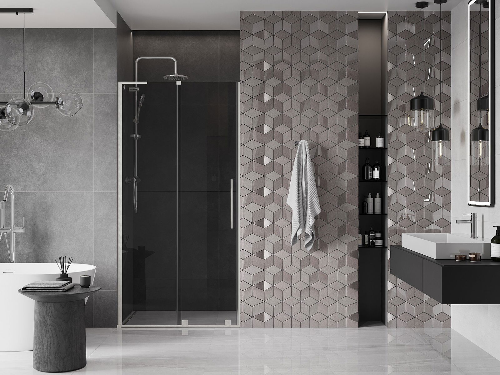 Poręczny i wygodny uchwyt został wykonany ze stali nierdzewnej. Modny kształt w połączeniu z wykończeniem dopasowanym do koloru profili nadaje całości nowoczesnego i stylowego wyglądu, podkreślając estetykę każdej łazienki.