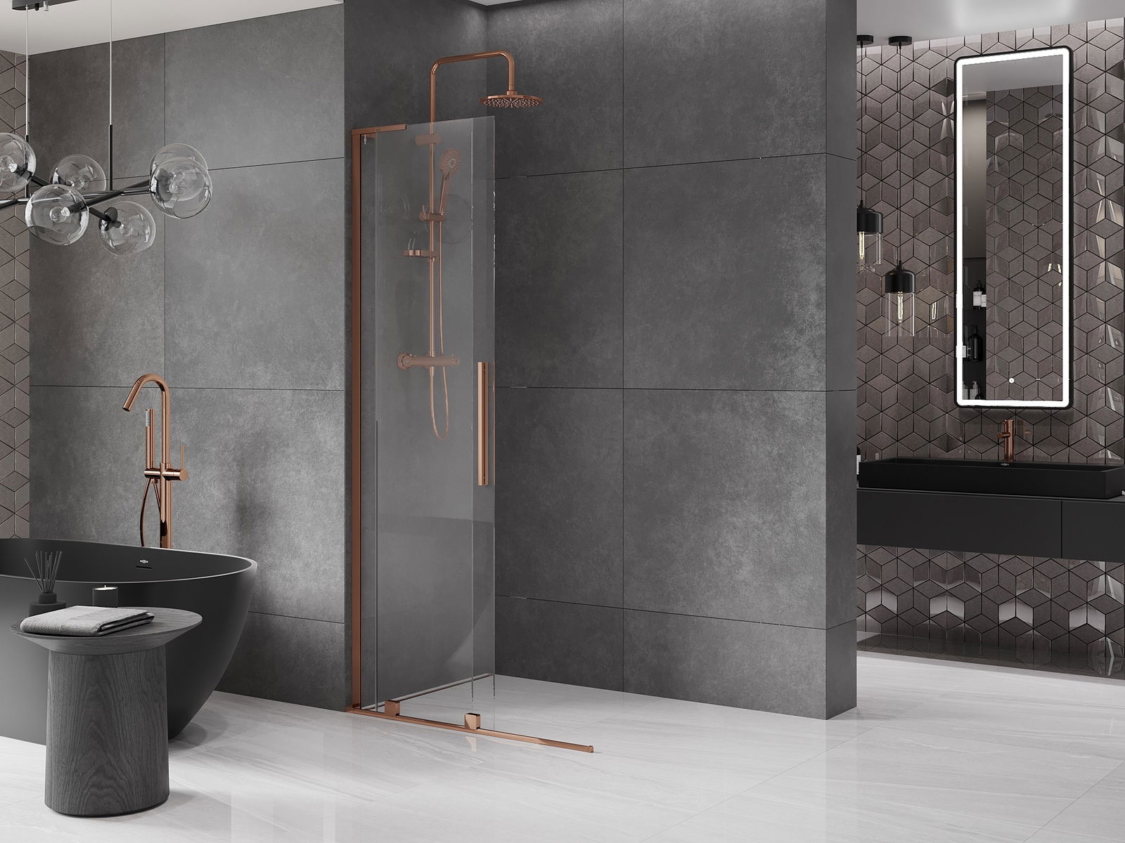 Mexen Velar L ścianka prysznicowa rozsuwana Walk-in 100 x 200 cm, transparent 8 mm, różowe złoto - 871-100-003-03-60