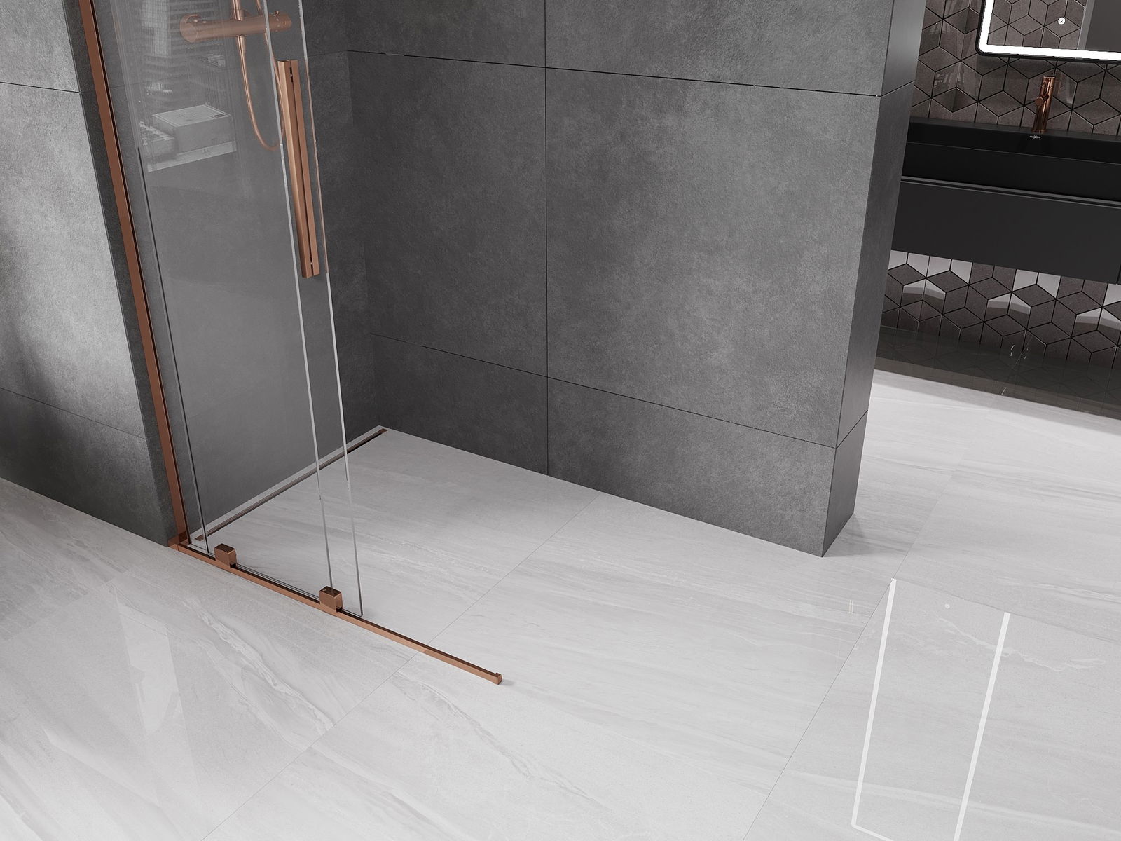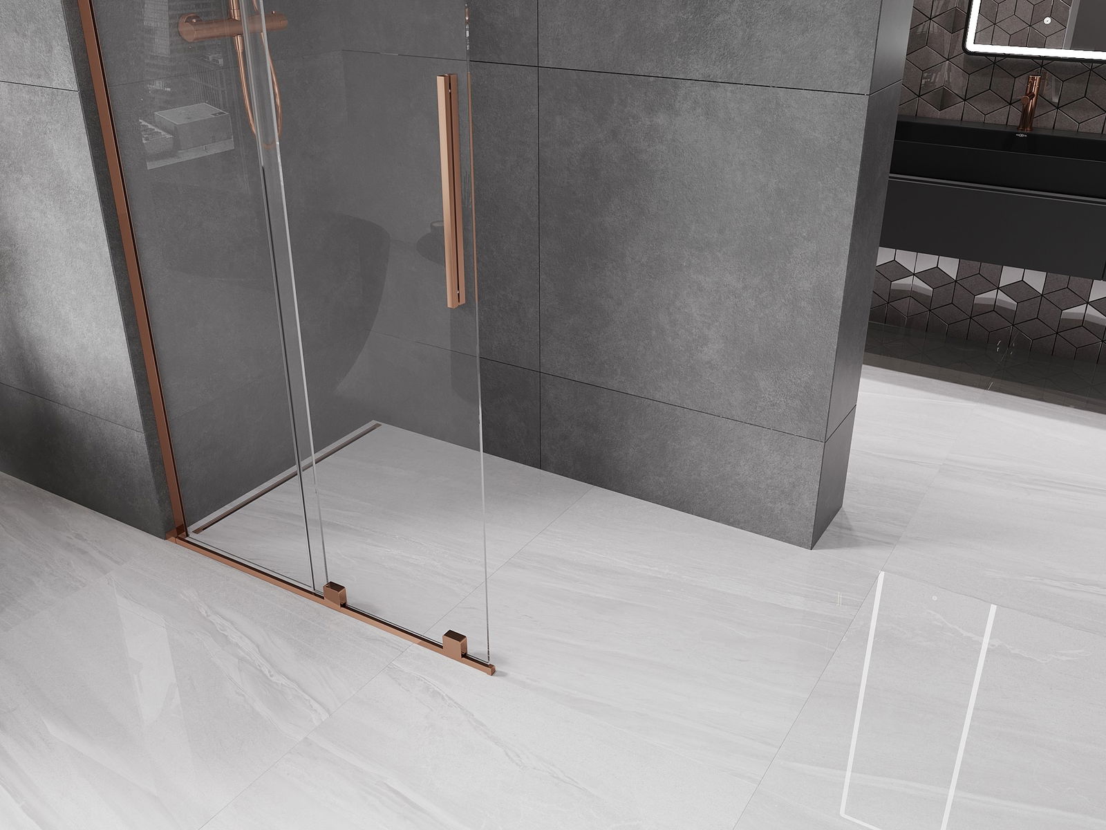 Mexen Velar L ścianka prysznicowa rozsuwana Walk-in 120 x 200 cm, transparent 8 mm, różowe złoto - 871-120-003-03-60