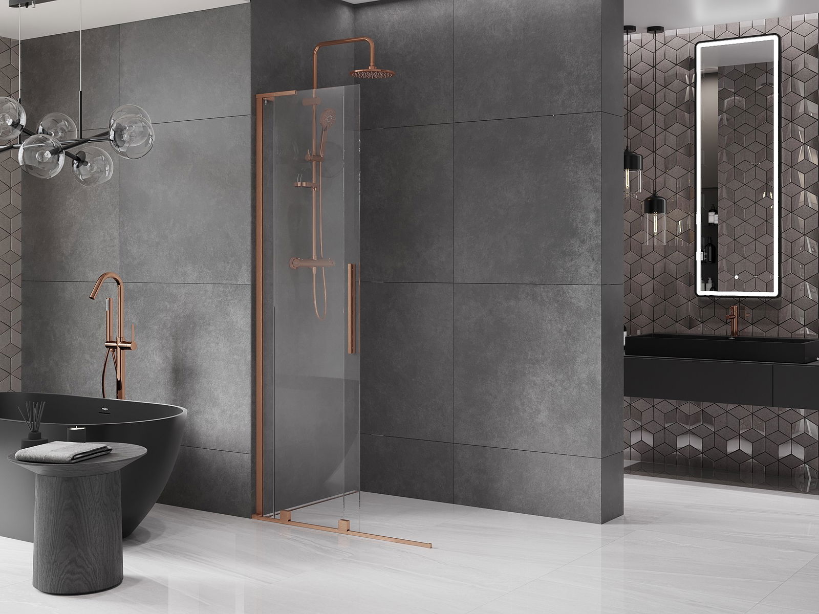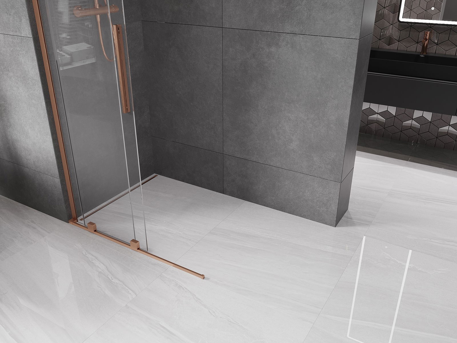 Mexen Velar L ścianka prysznicowa rozsuwana Walk-in 90 x 200 cm, transparent 8 mm, miedź szczotkowana - 871-090-003-03-65