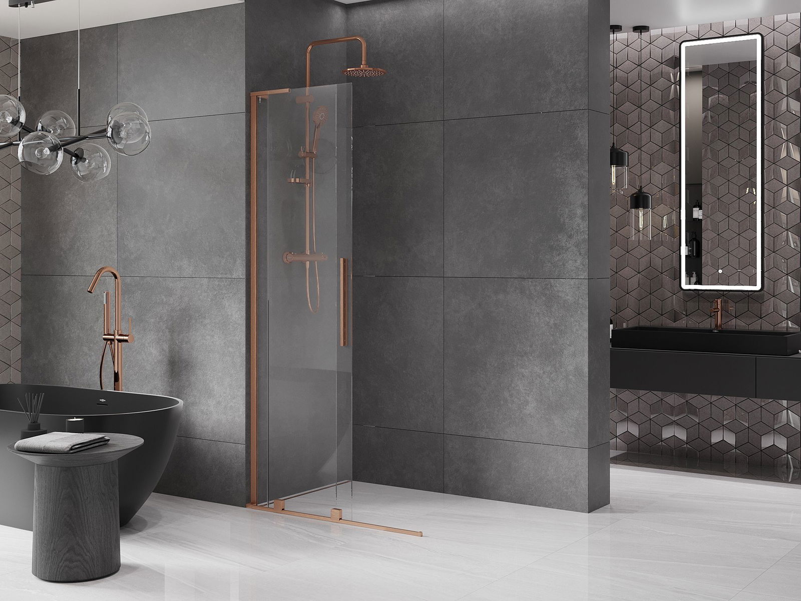 Ścianka prysznicowa walk-in to idealne rozwiązanie dla osób niepełnosprawnych. Kabina otwarta zapewnia łatwy dostęp, eliminując potrzebę pokonywania progów i drzwi. Korzystanie z prysznica jest komfortowe i przyjazne dla każdego.