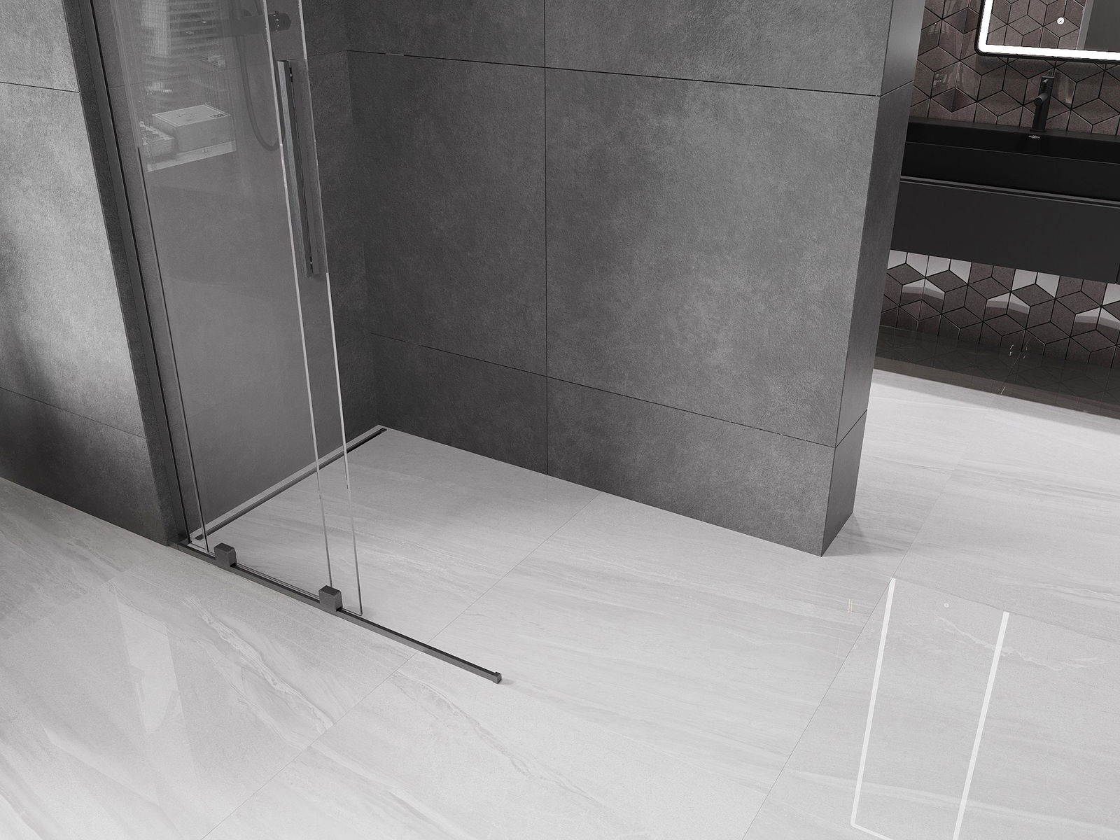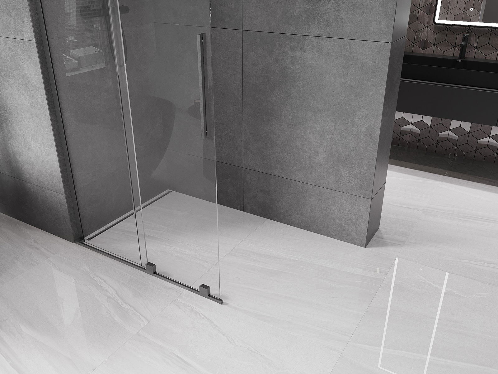 Mexen Velar L ścianka prysznicowa rozsuwana Walk-in 90 x 200 cm, transparent 8 mm, gun gray szczotkowany - 871-090-003-03-66