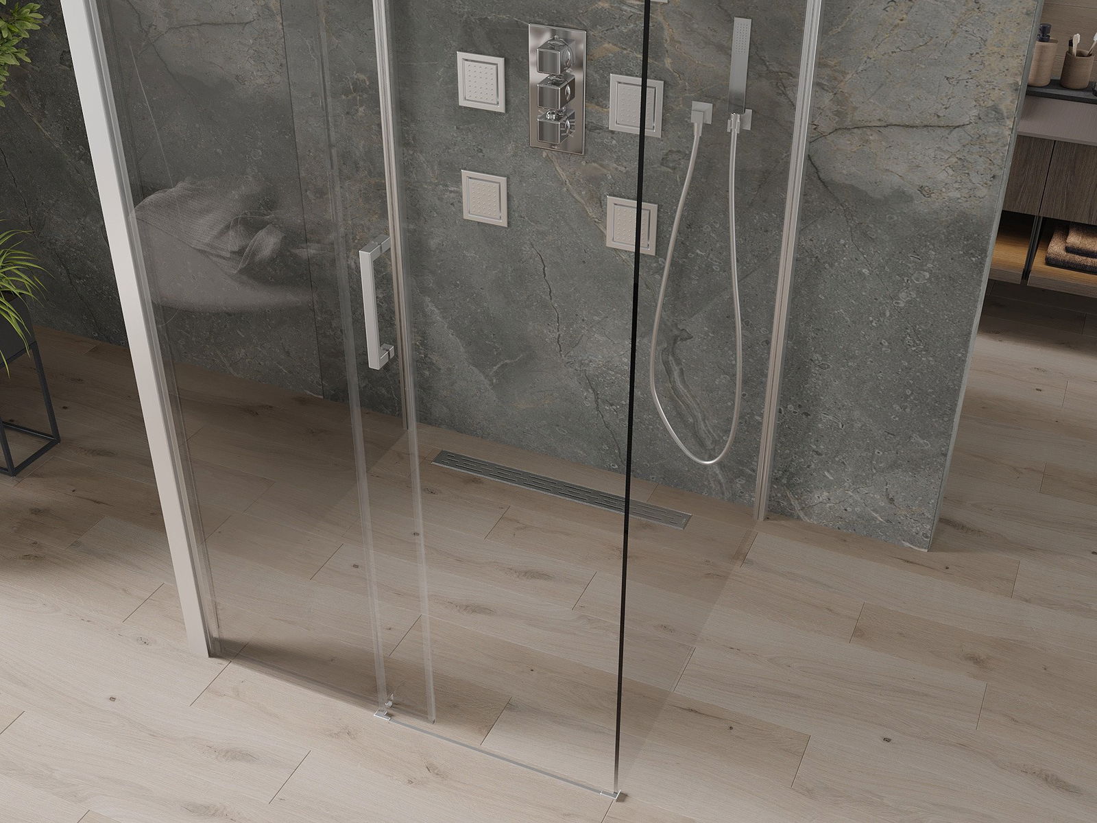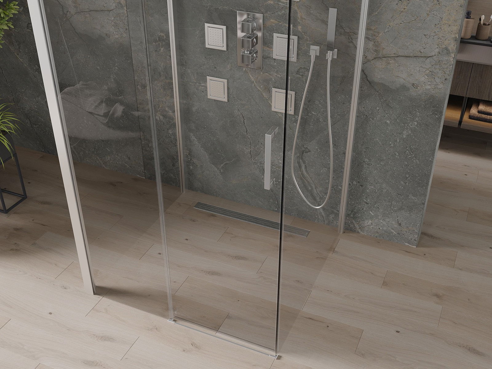 Dzięki zastosowaniu uniwersalnego systemu mocowania, drzwi prysznicowe mogą zostać zamontowane z prawej lub z lewej strony, zależnie od potrzeb. Dzięki temu możesz z łatwością zaprojektować prysznic dopasowany do przestrzeni łazienki.