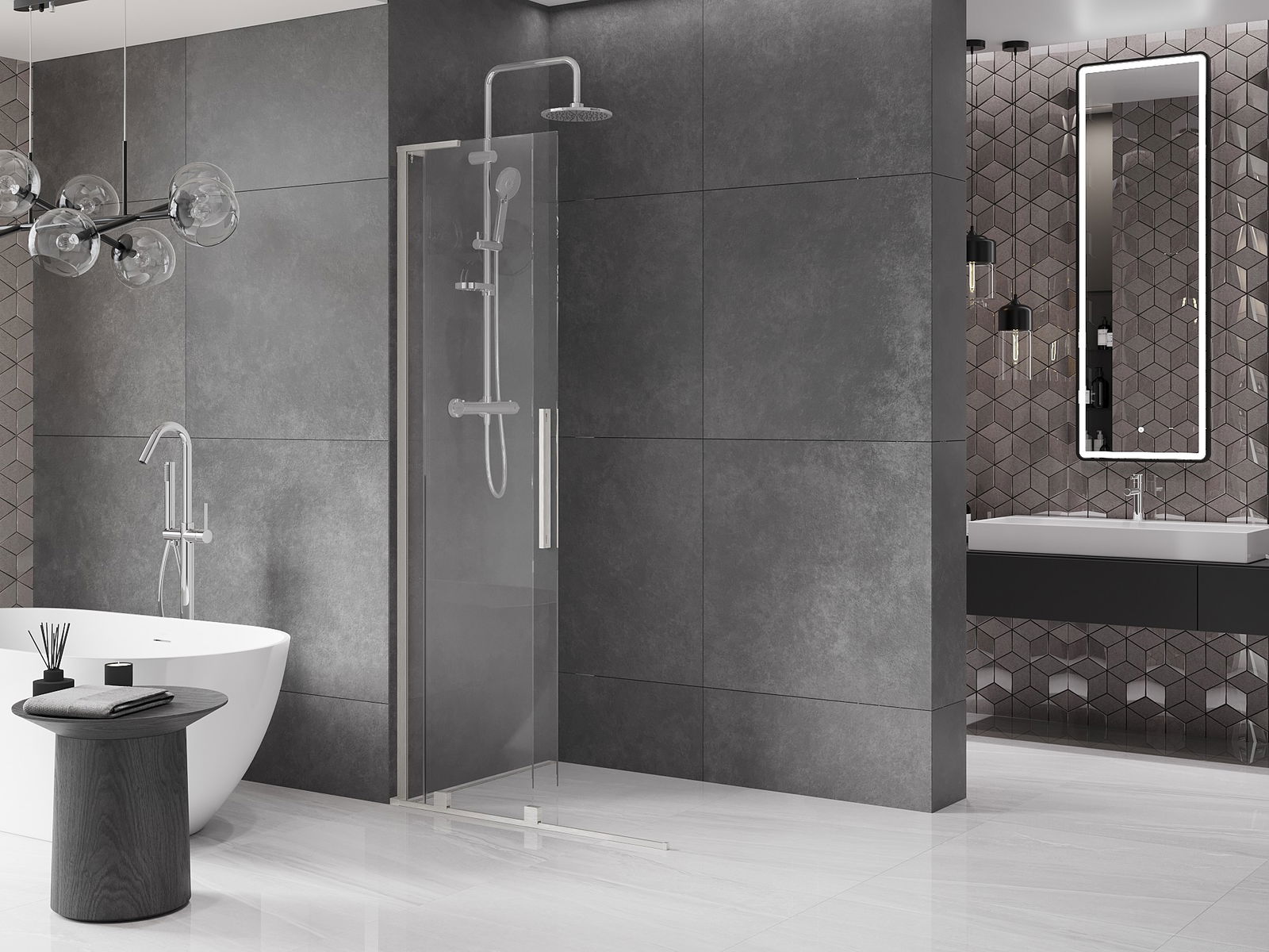 Ścianka prysznicowa walk-in to idealne rozwiązanie dla osób niepełnosprawnych. Kabina otwarta zapewnia łatwy dostęp, eliminując potrzebę pokonywania progów i drzwi. Korzystanie z prysznica jest komfortowe i przyjazne dla każdego.