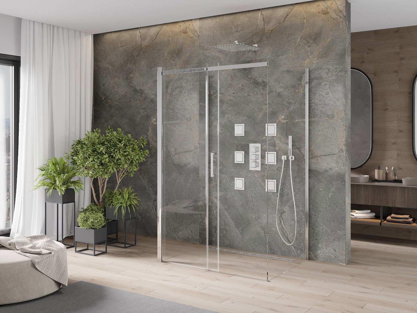 Dzięki zastosowaniu uniwersalnego systemu mocowania, drzwi prysznicowe mogą zostać zamontowane z prawej lub z lewej strony, zależnie od potrzeb. Dzięki temu możesz z łatwością zaprojektować prysznic dopasowany do przestrzeni łazienki.