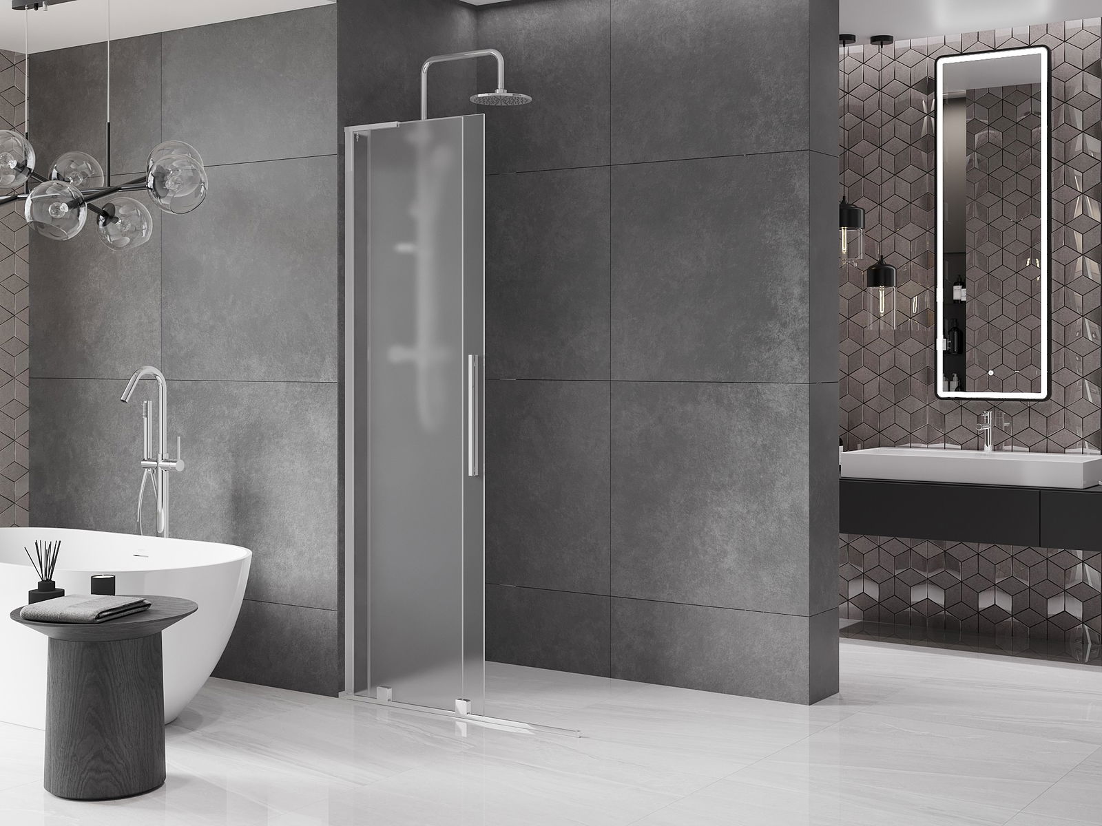 Ścianka prysznicowa walk-in to idealne rozwiązanie dla osób niepełnosprawnych. Kabina otwarta zapewnia łatwy dostęp, eliminując potrzebę pokonywania progów i drzwi. Korzystanie z prysznica jest komfortowe i przyjazne dla każdego.