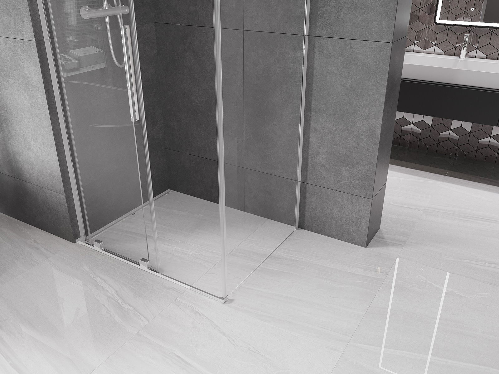 Dzięki zastosowaniu uniwersalnego systemu mocowania, drzwi prysznicowe mogą zostać zamontowane z prawej lub z lewej strony, zależnie od potrzeb. Dzięki temu możesz z łatwością zaprojektować prysznic dopasowany do przestrzeni łazienki.