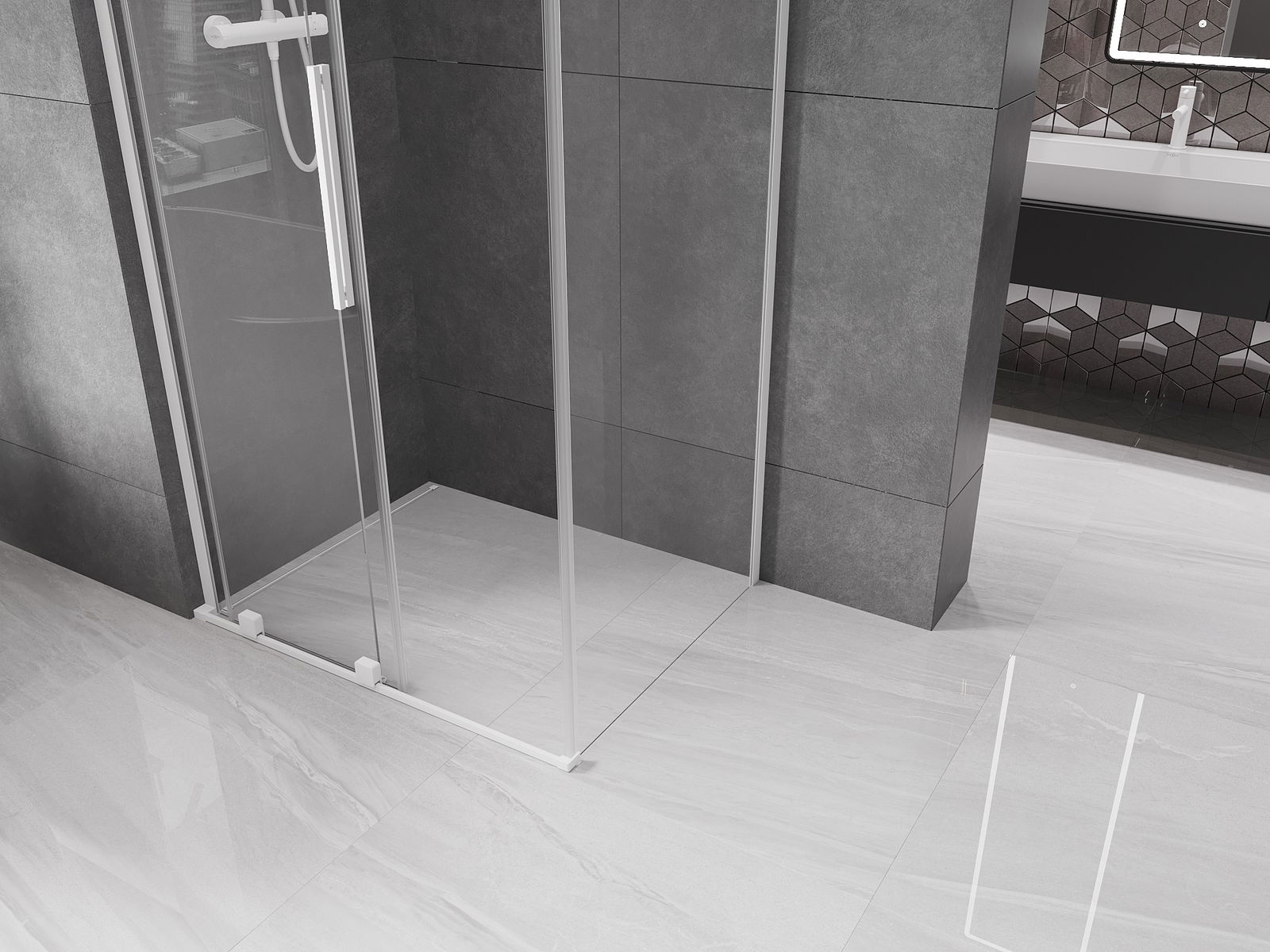 Dzięki zastosowaniu uniwersalnego systemu mocowania, drzwi prysznicowe mogą zostać zamontowane z prawej lub z lewej strony, zależnie od potrzeb. Dzięki temu możesz z łatwością zaprojektować prysznic dopasowany do przestrzeni łazienki.