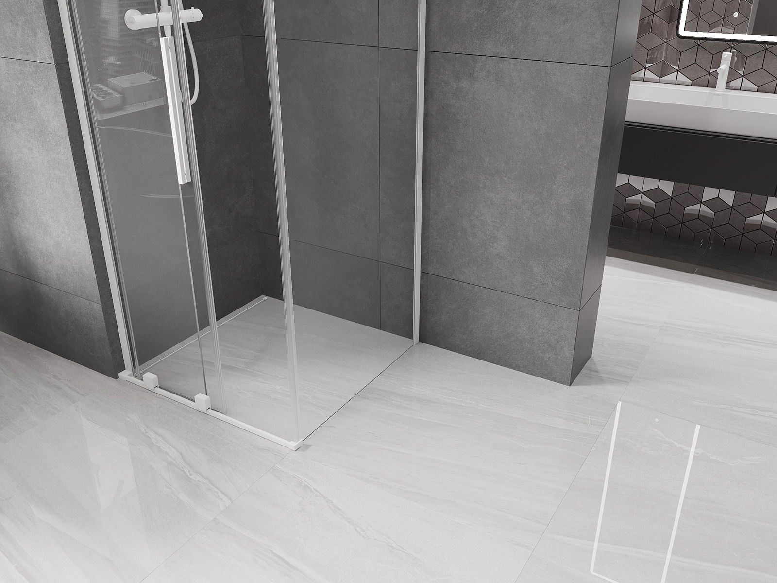 Dzięki zastosowaniu uniwersalnego systemu mocowania, drzwi prysznicowe mogą zostać zamontowane z prawej lub z lewej strony, zależnie od potrzeb. Dzięki temu możesz z łatwością zaprojektować prysznic dopasowany do przestrzeni łazienki.