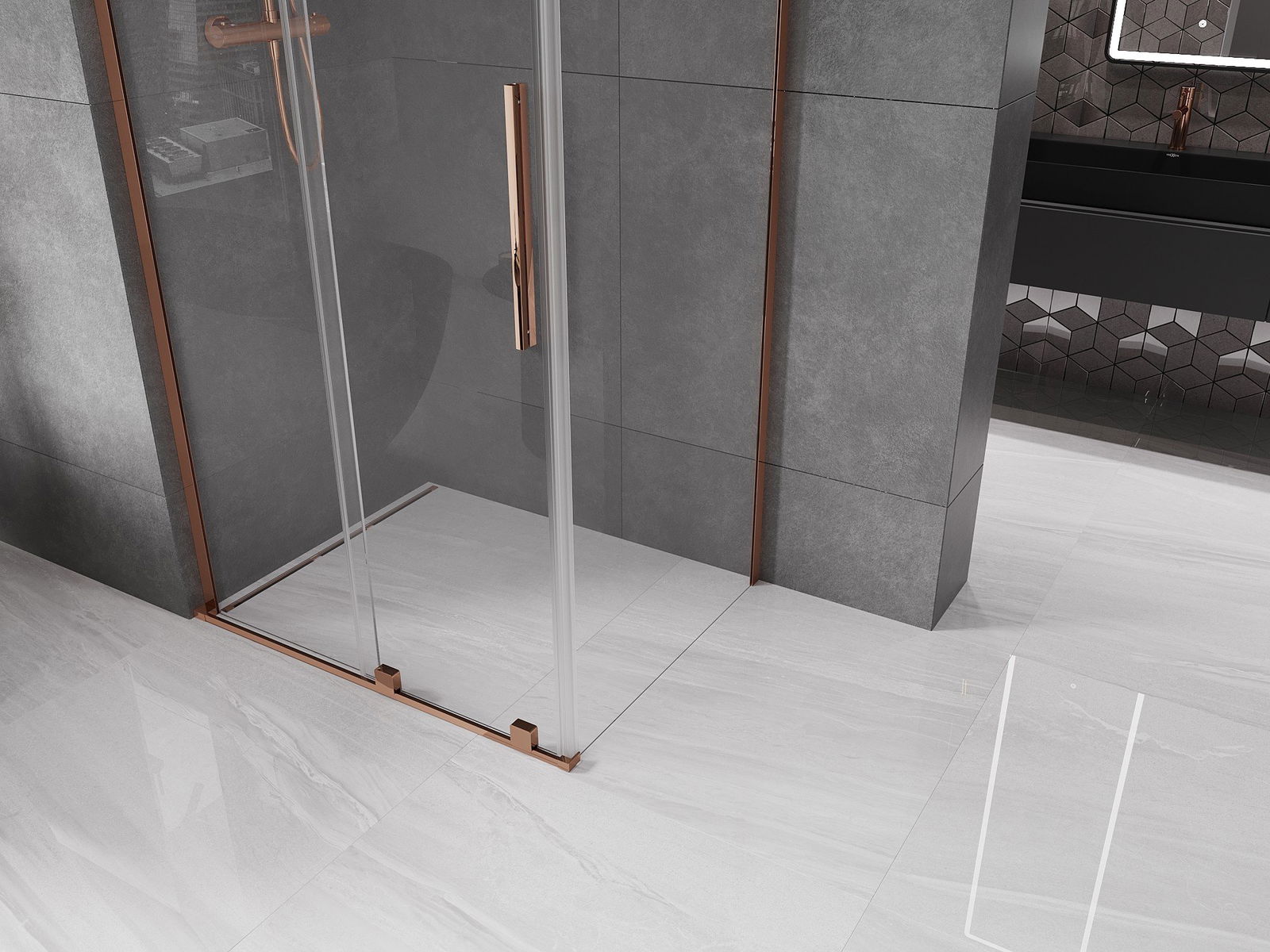 Mexen Velar L kabina prysznicowa rozsuwana 110 x 120 cm, transparent, różowe złoto - 871-110-120-03-60