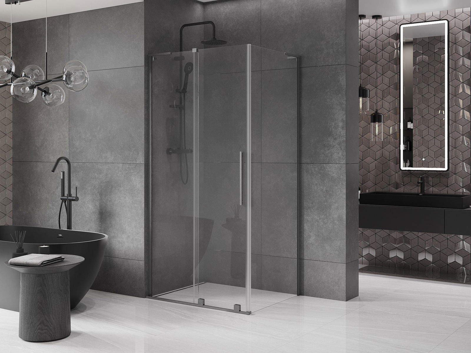 Dzięki zastosowaniu uniwersalnego systemu mocowania, drzwi prysznicowe mogą zostać zamontowane z prawej lub z lewej strony, zależnie od potrzeb. Dzięki temu możesz z łatwością zaprojektować prysznic dopasowany do przestrzeni łazienki.