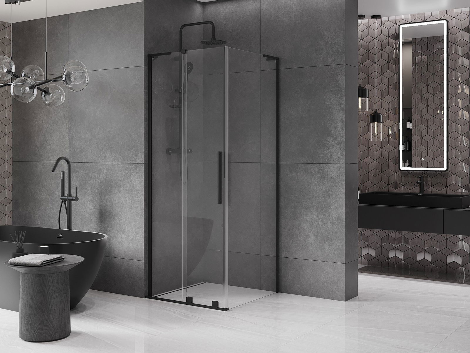 Poręczny i wygodny uchwyt został wykonany ze stali nierdzewnej. Modny kształt w połączeniu z wykończeniem dopasowanym do koloru profili nadaje całości nowoczesnego i stylowego wyglądu, podkreślając estetykę każdej łazienki.