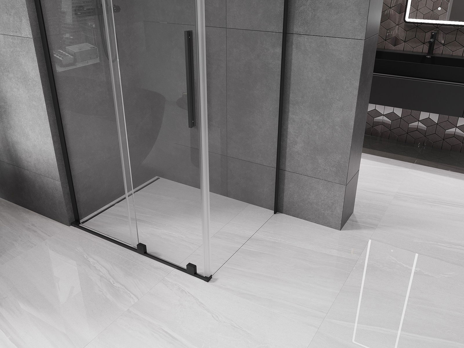 Dzięki zastosowaniu uniwersalnego systemu mocowania, drzwi prysznicowe mogą zostać zamontowane z prawej lub z lewej strony, zależnie od potrzeb. Dzięki temu możesz z łatwością zaprojektować prysznic dopasowany do przestrzeni łazienki.