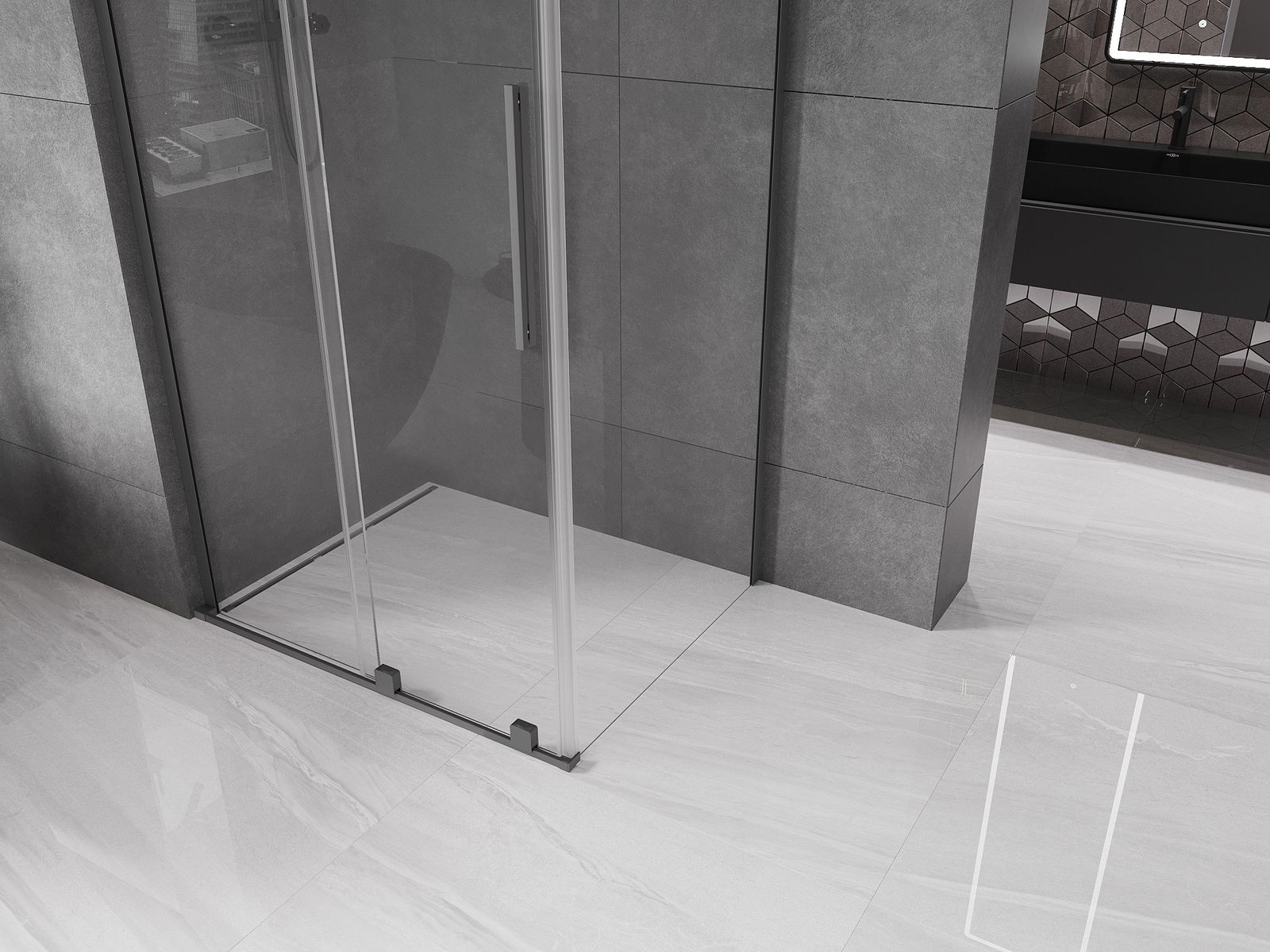 Dzięki zastosowaniu uniwersalnego systemu mocowania, drzwi prysznicowe mogą zostać zamontowane z prawej lub z lewej strony, zależnie od potrzeb. Dzięki temu możesz z łatwością zaprojektować prysznic dopasowany do przestrzeni łazienki.