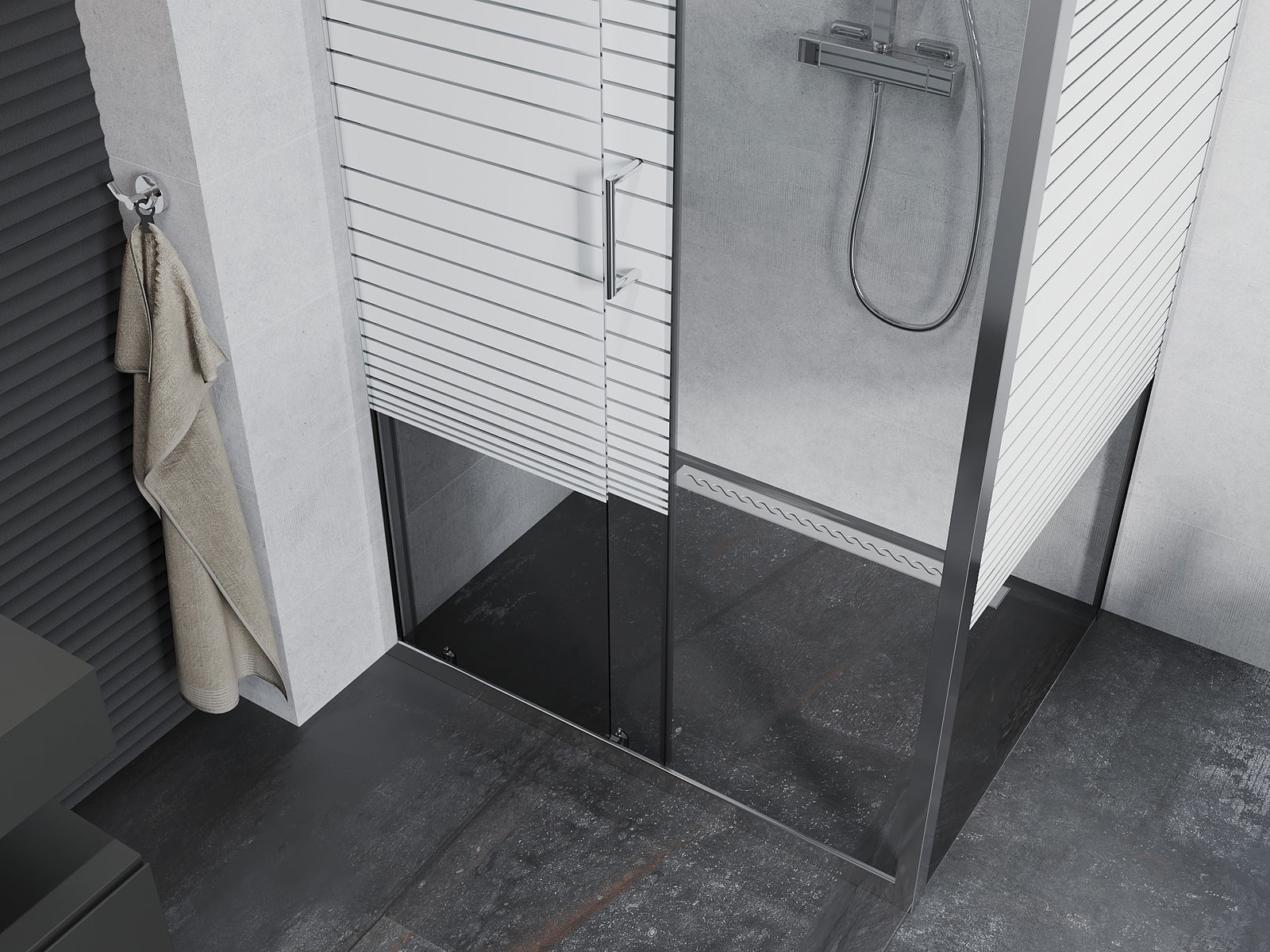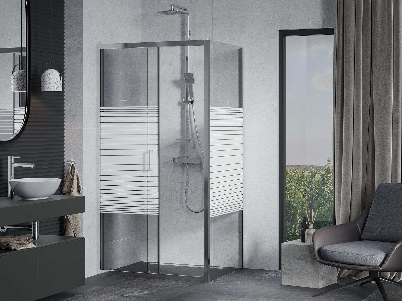 Mexen Apia kabina prysznicowa rozsuwana 95 x 70 cm, białe pasy, chrom - 840-095-070-01-20