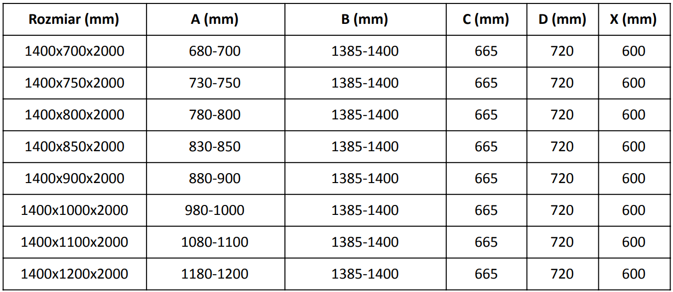 Rozmiar: 140x85 cm (drzwi 140 cm, ścianka 85 cm)