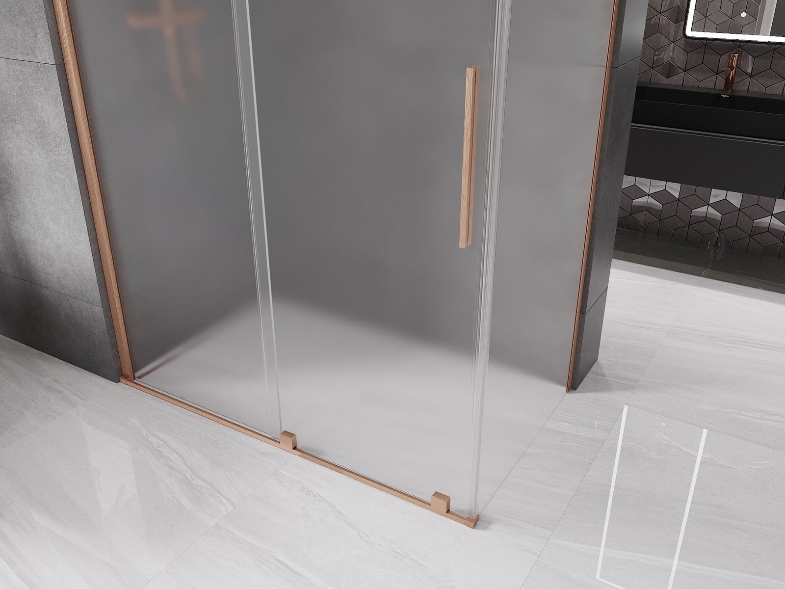 Mexen Velar kabina prysznicowa rozsuwana 150 x 70 cm, szron, miedź szczotkowana - 871-150-070-31-65