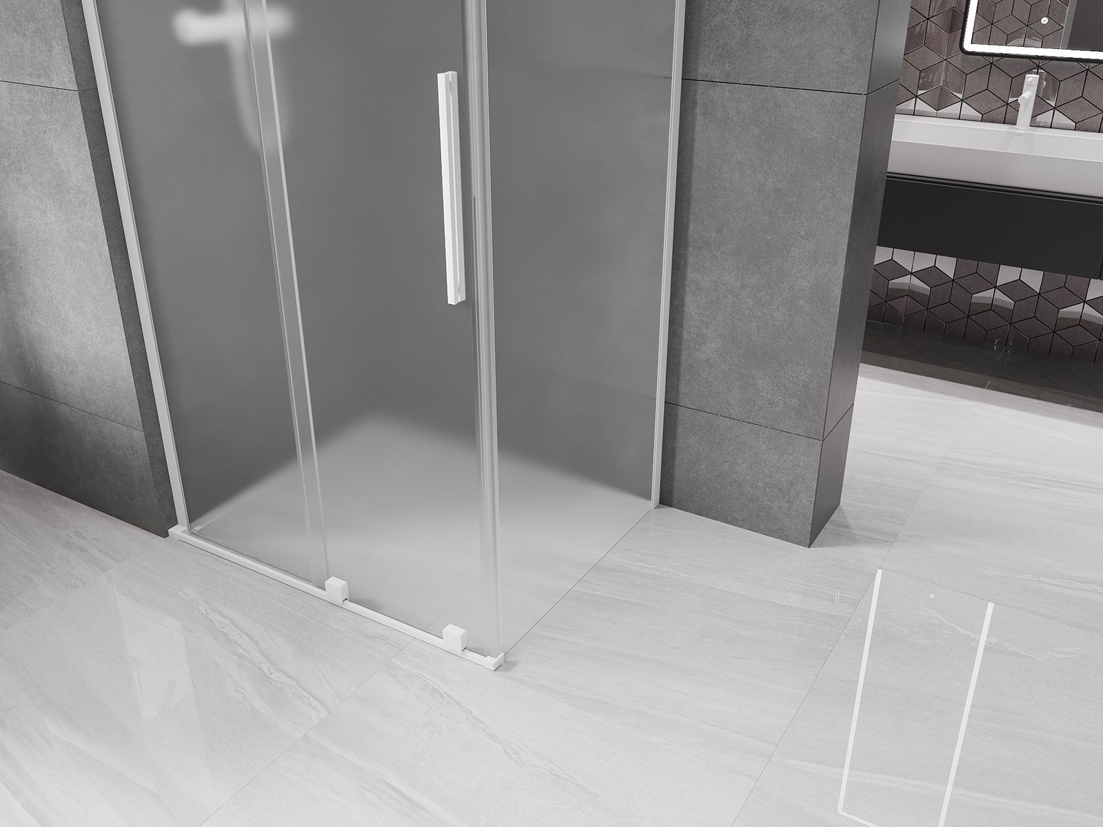 Mexen Velar L kabina prysznicowa rozsuwana 100 x 110 cm, szron, biała - 871-100-110-33-20