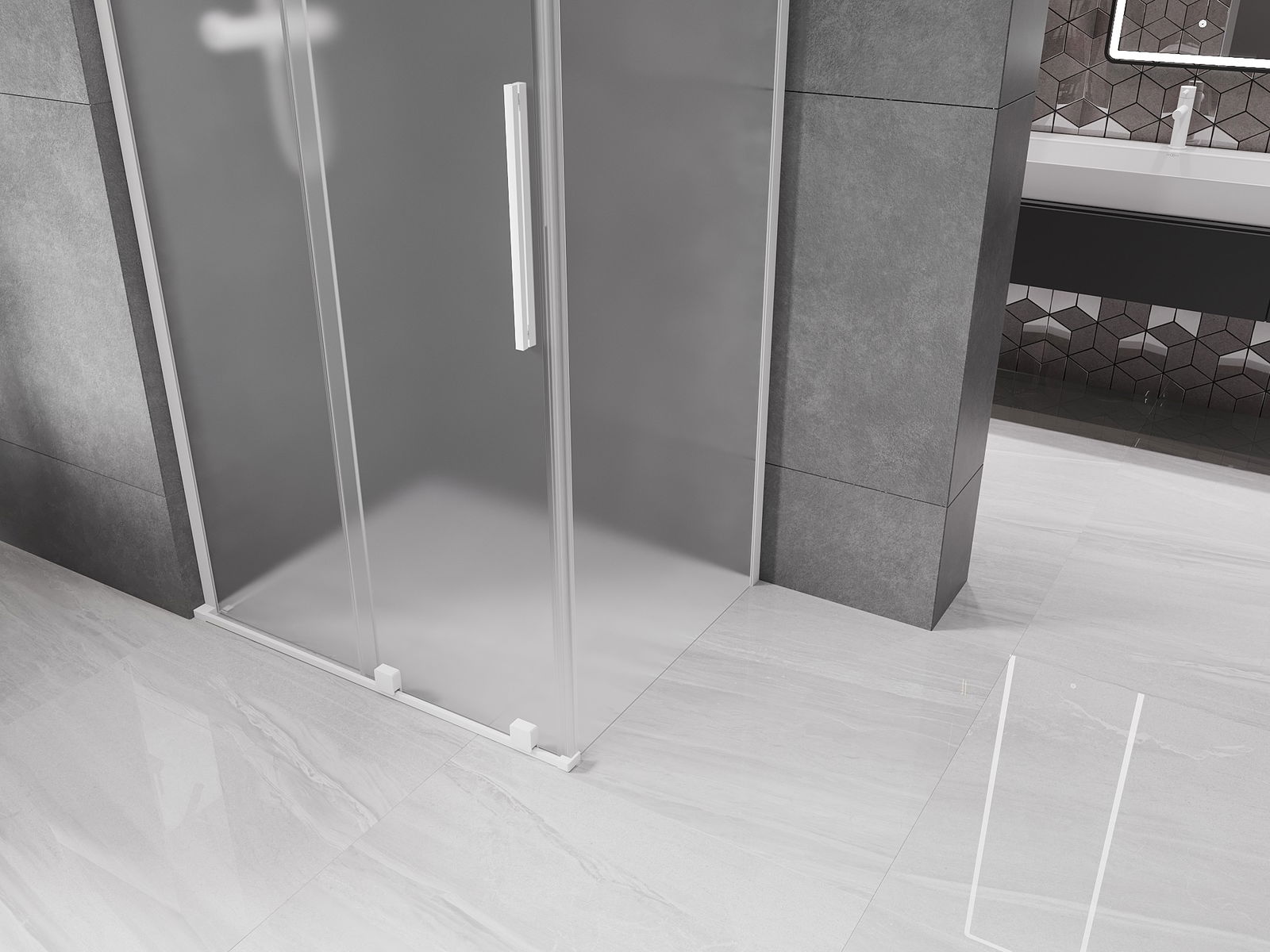 Mexen Velar L kabina prysznicowa rozsuwana 120 x 85 cm, szron, biała - 871-120-085-33-20