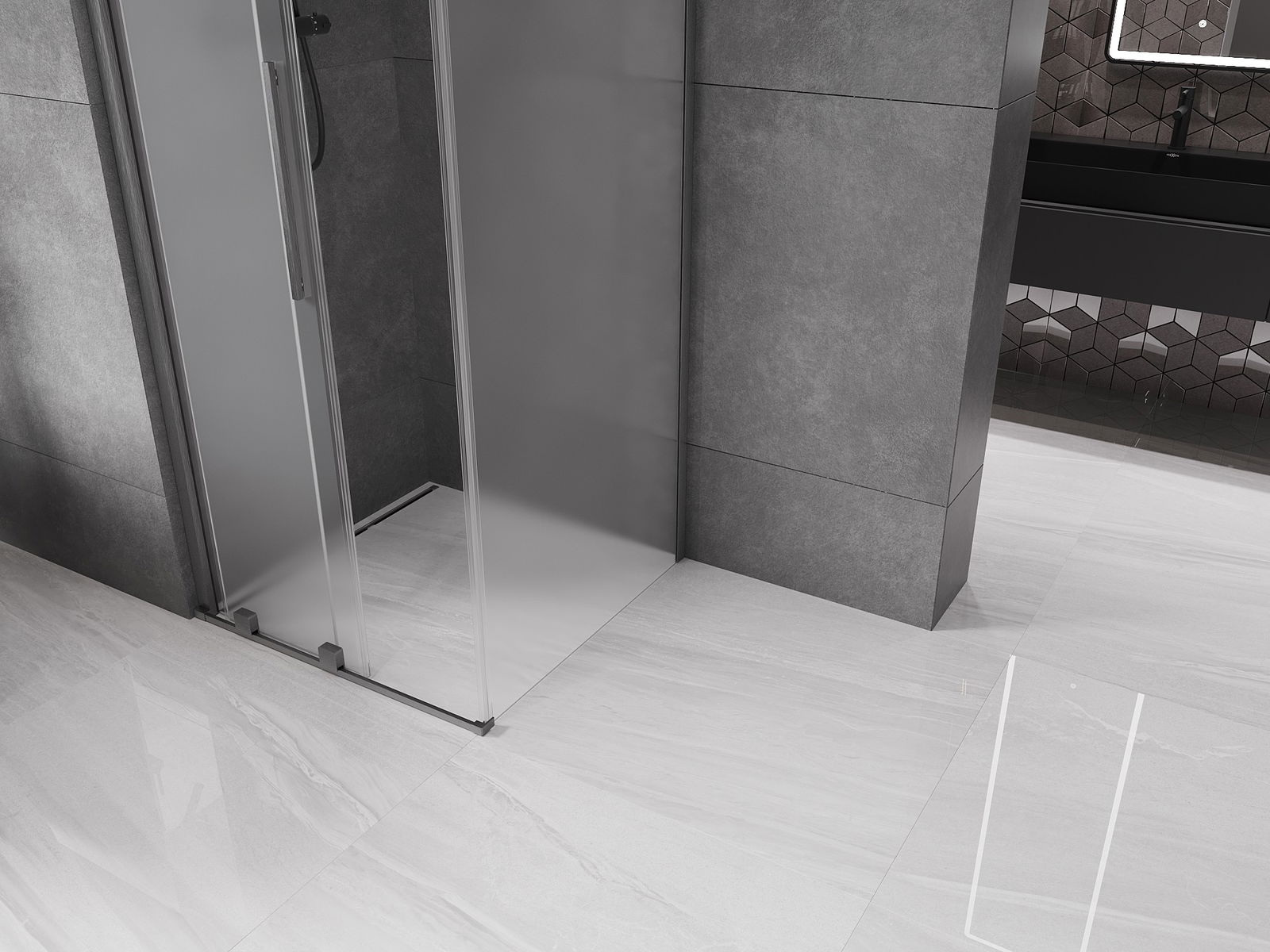 Dzięki zastosowaniu uniwersalnego systemu mocowania, drzwi prysznicowe mogą zostać zamontowane z prawej lub z lewej strony, zależnie od potrzeb. Dzięki temu możesz z łatwością zaprojektować prysznic dopasowany do przestrzeni łazienki.