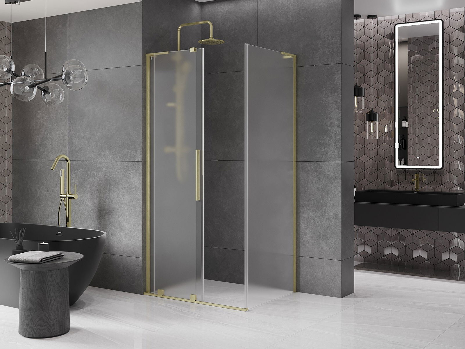 Mexen Velar L kabina prysznicowa rozsuwana 120 x 75 cm, szron, złota szczotkowana - 871-120-075-33-55
