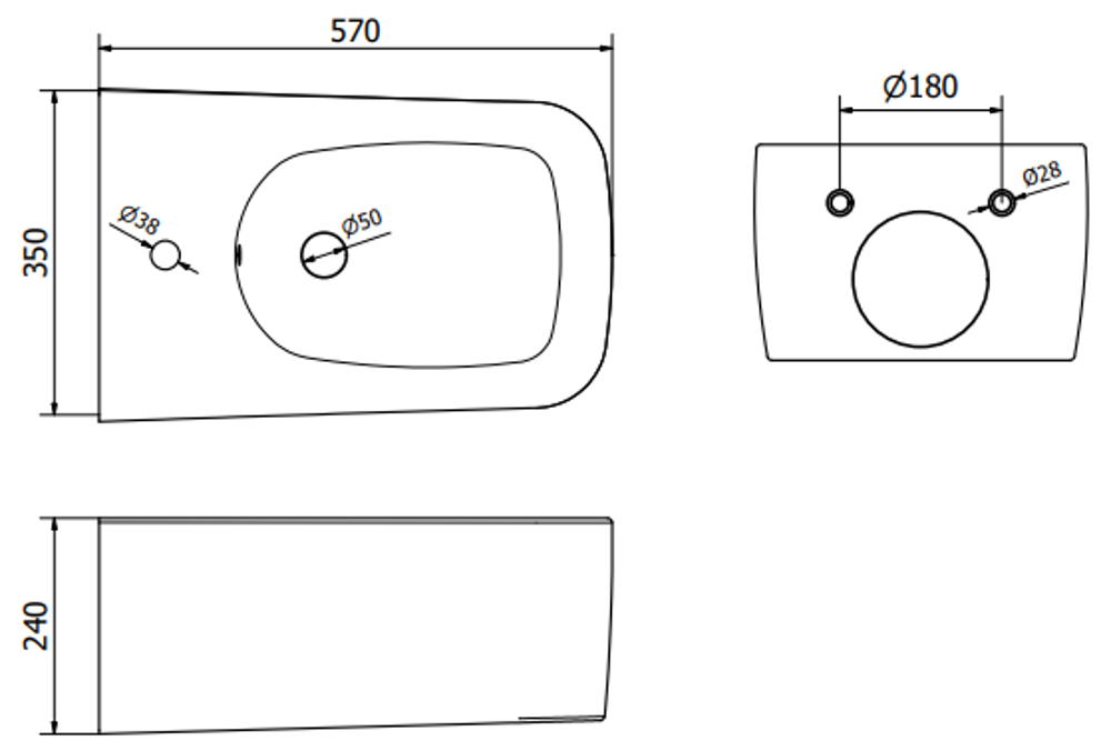 Specyfikacja produktu: Rozmiar: 55,5x35x24 cm Montaż: Wiszący Rozstaw mocowania: 18 cm Kolor: Biały Materiał: Ceramika sanitarna