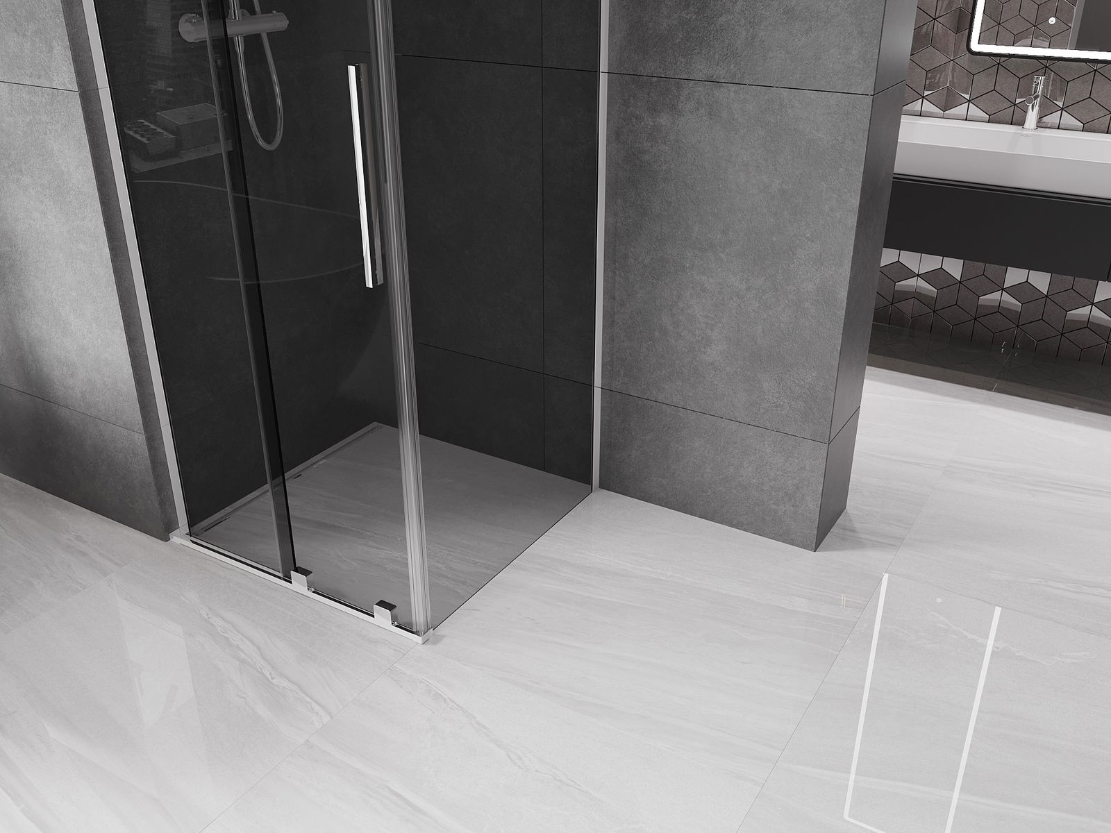 Dzięki zastosowaniu uniwersalnego systemu mocowania, drzwi prysznicowe mogą zostać zamontowane z prawej lub z lewej strony, zależnie od potrzeb. Dzięki temu możesz z łatwością zaprojektować prysznic dopasowany do przestrzeni łazienki.