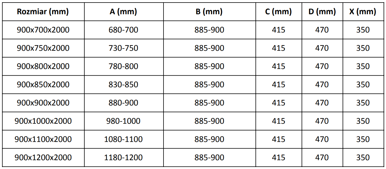 Rozmiar: 90x120 cm (drzwi 90 cm, ścianka 120 cm)