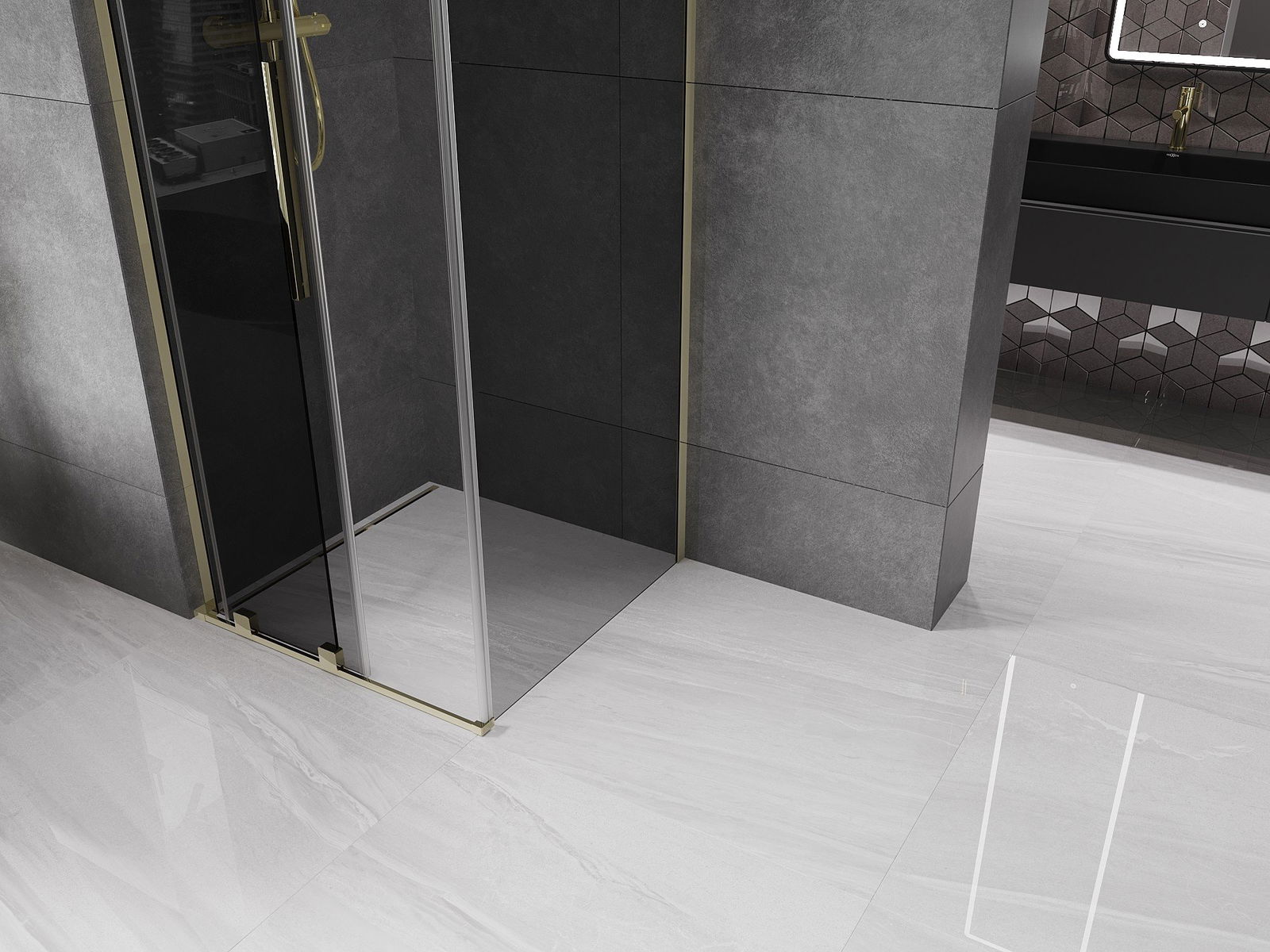 Mexen Velar L kabina prysznicowa rozsuwana 110 x 110 cm, grafit, złota - 871-110-110-43-50