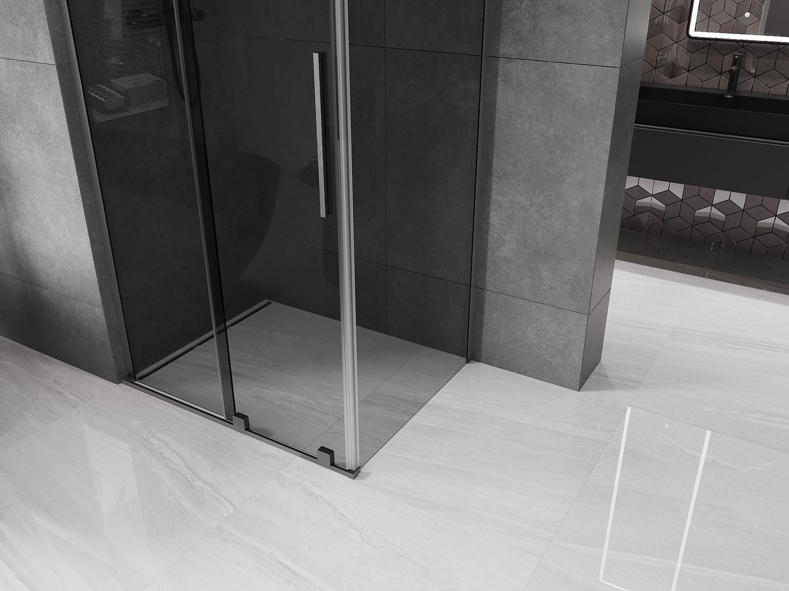 Dzięki zastosowaniu uniwersalnego systemu mocowania, drzwi prysznicowe mogą zostać zamontowane z prawej lub z lewej strony, zależnie od potrzeb. Dzięki temu możesz z łatwością zaprojektować prysznic dopasowany do przestrzeni łazienki.