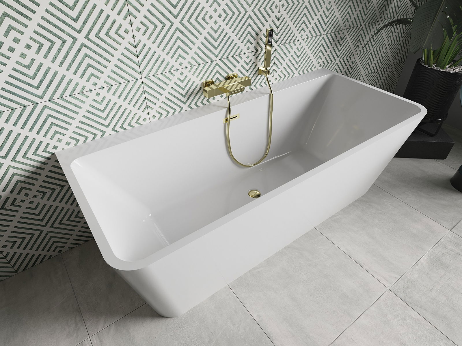 Mexen Volta wanna wolnostojąca przyścienna 170 x 75 cm, biała, przelew złoty - 51131707500-50