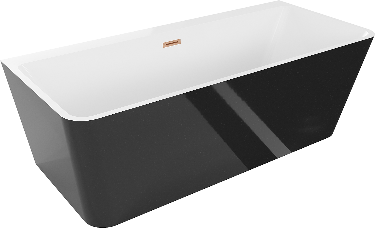 Mexen Volta wanna wolnostojąca przyścienna 170 x 75 cm, biała/czarna, przelew miedź szczotkowana - 51131707575-65