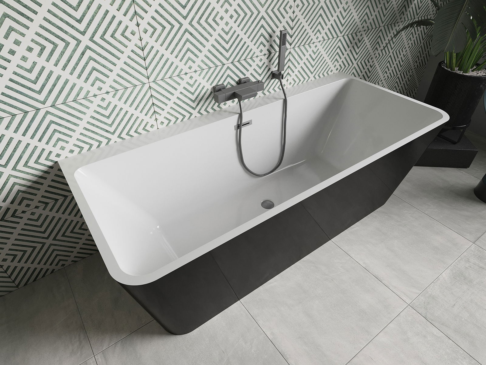 Mexen Volta wanna wolnostojąca przyścienna 170 x 75 cm, biała/czarna, przelew gun gray szczotkowany - 51131707575-66