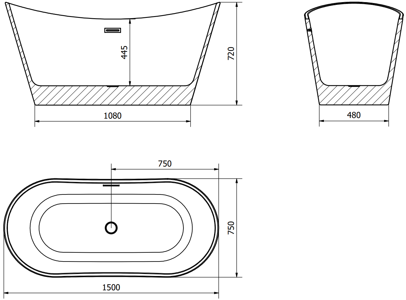 Mexen Montana wanna wolnostojąca 150 x 75 cm, biała, przelew chrom - 52011507500-01