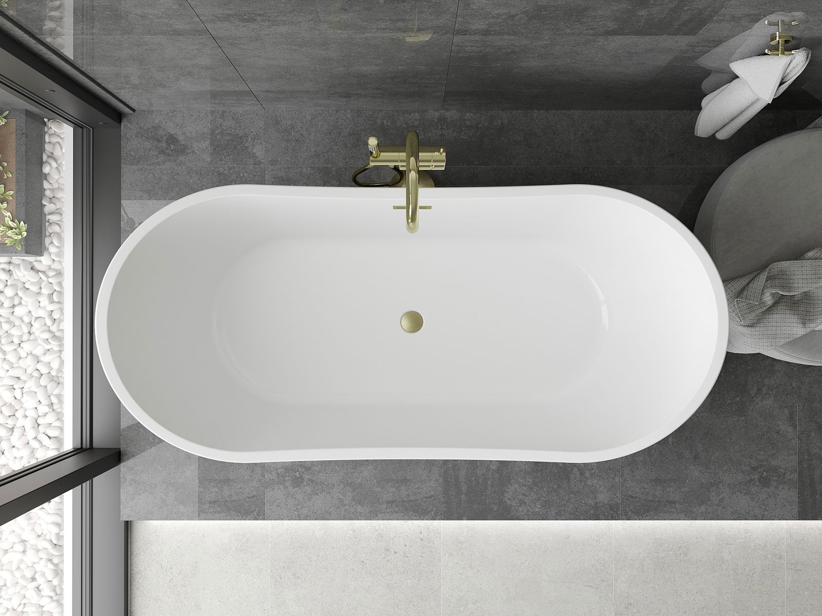 Mexen Montana wanna wolnostojąca 150 x 75 cm, biała/czarna, przelew złoty szczotkowany - 52011507575-55