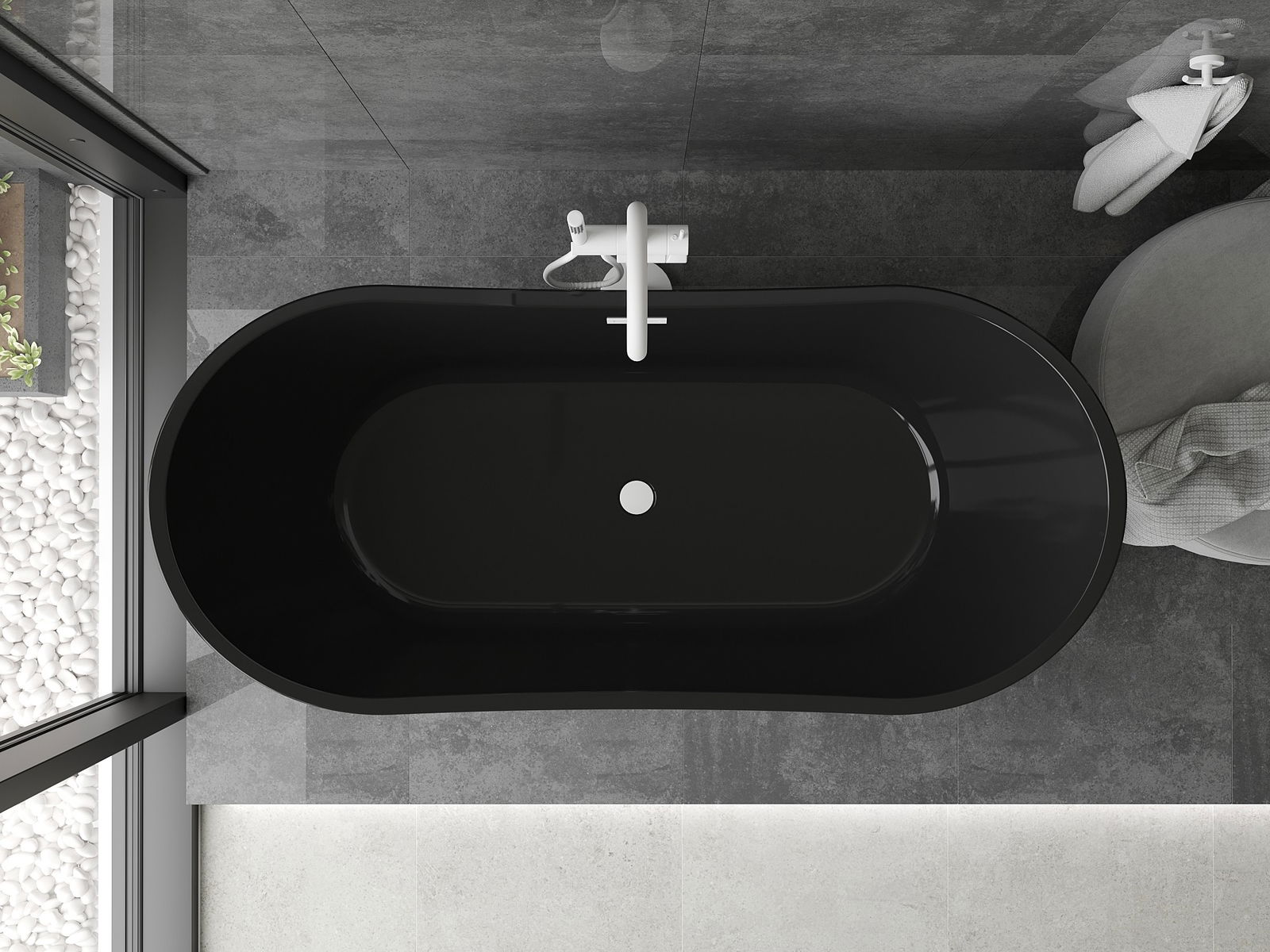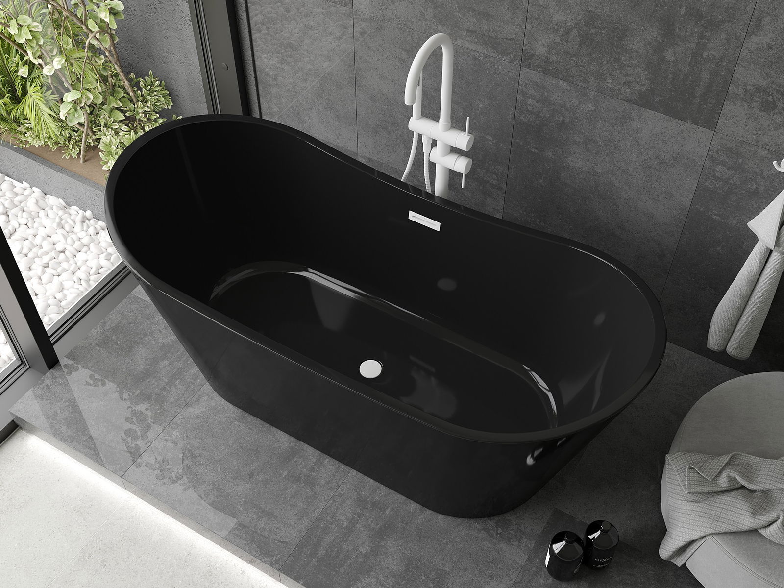 Mexen Montana wanna wolnostojąca 170 x 80 cm, czarna, przelew biały - 52011708070-20