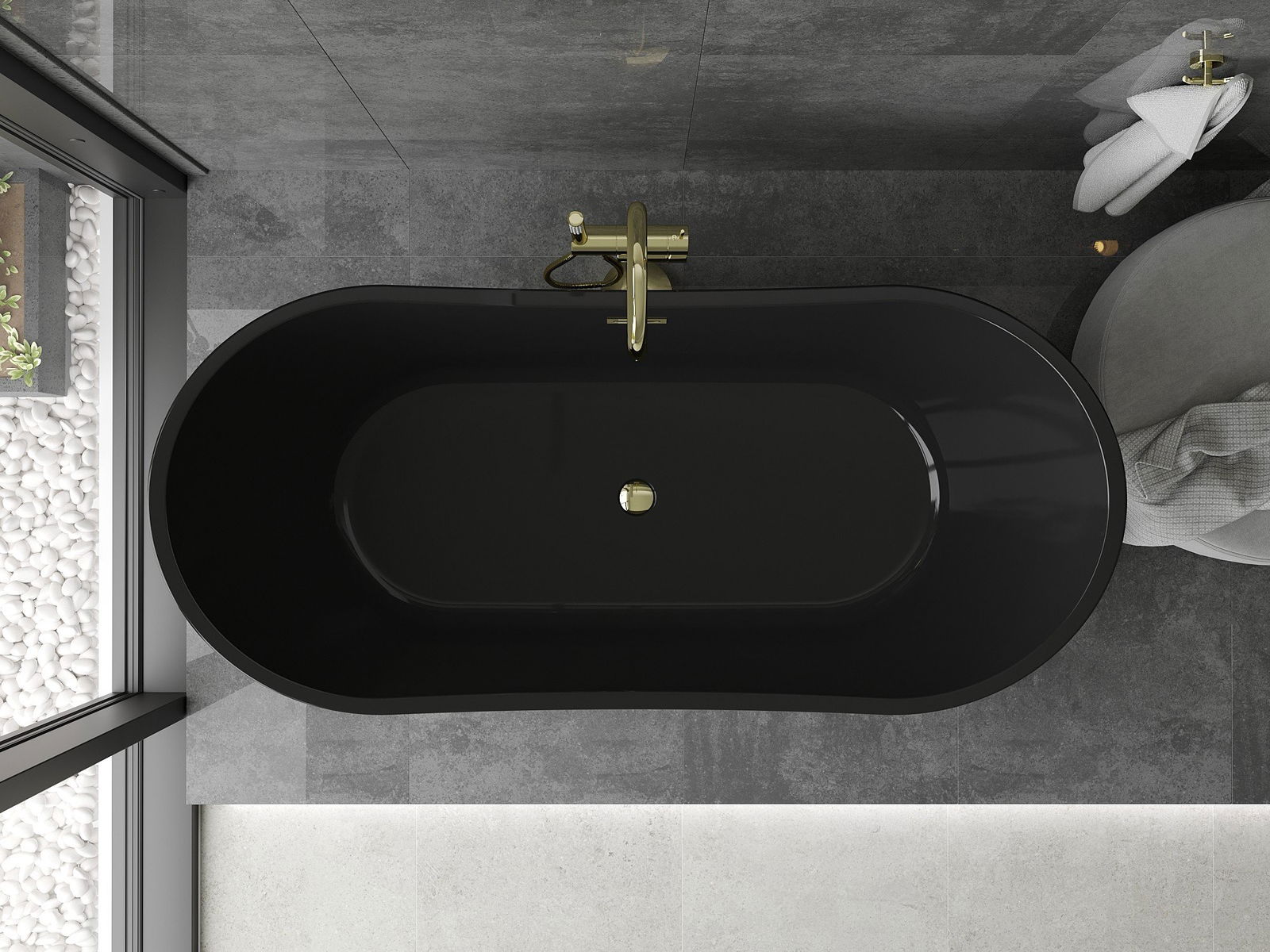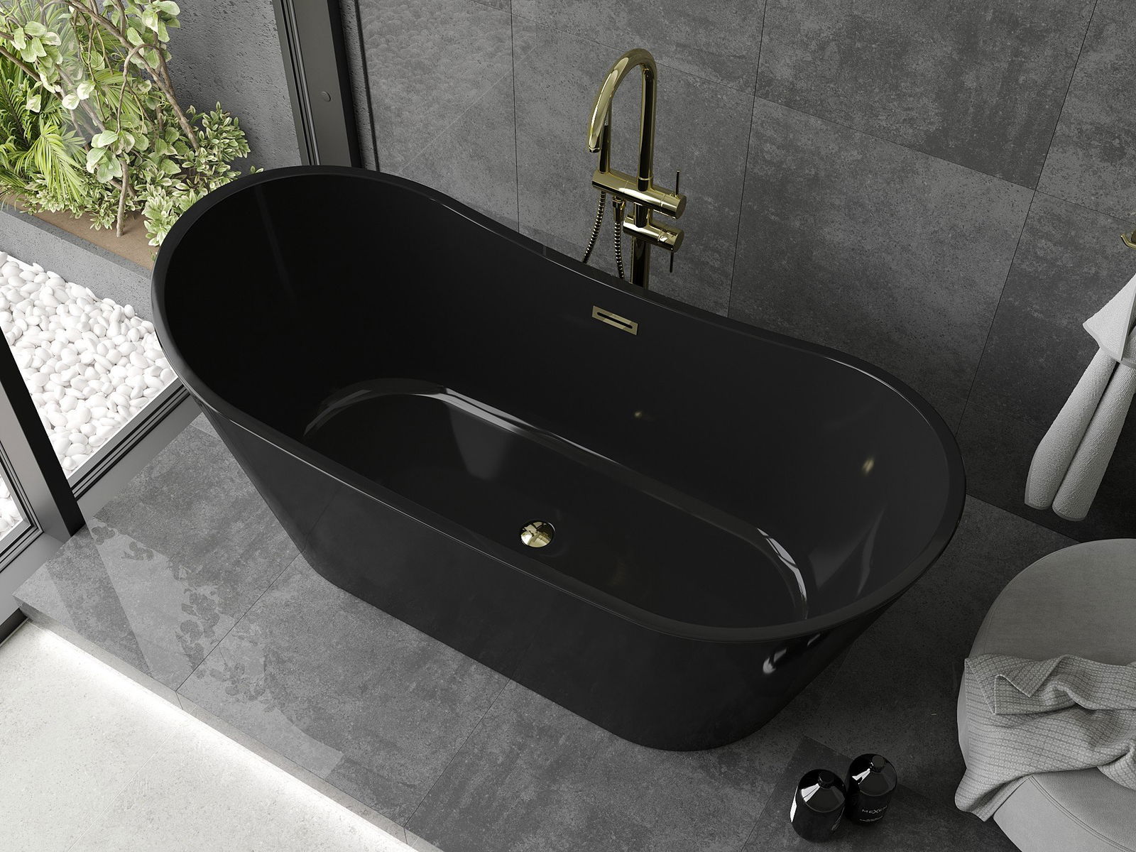 Mexen Montana wanna wolnostojąca 170 x 80 cm, czarna, przelew złoty - 52011708070-50