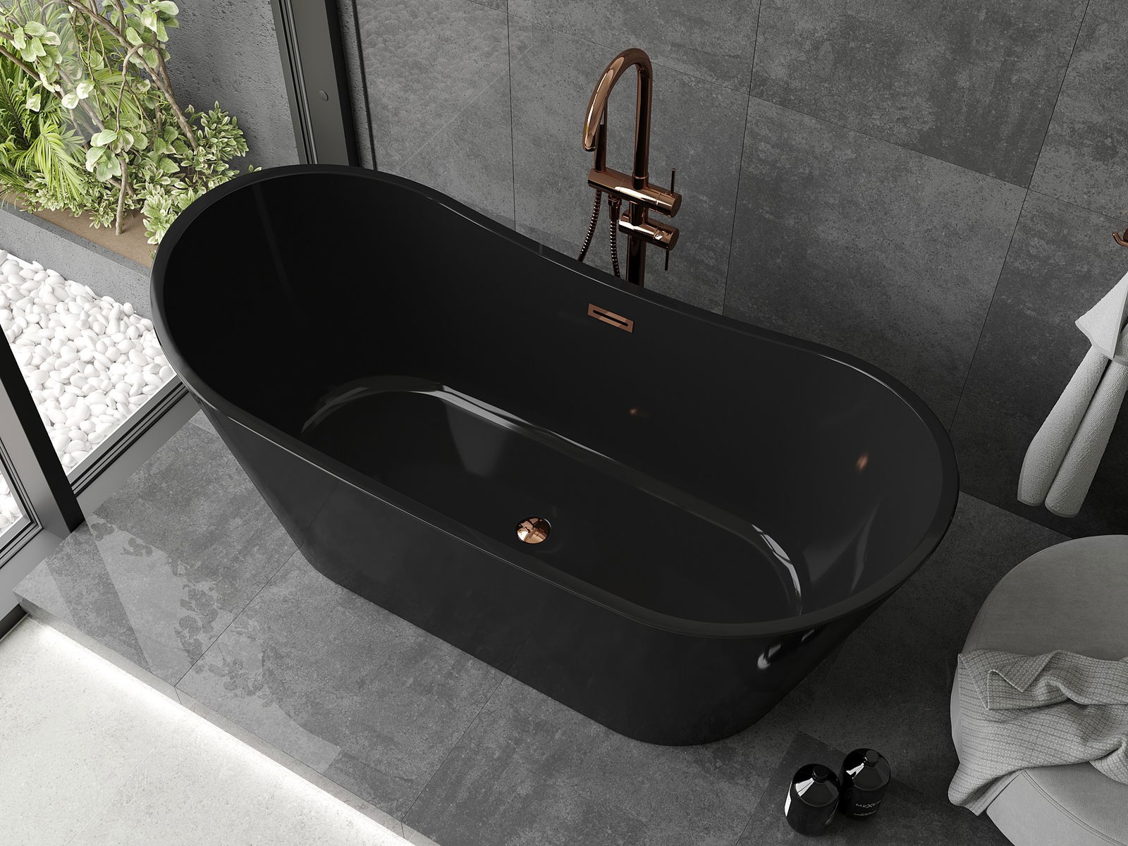 Mexen Montana wanna wolnostojąca 170 x 80 cm, czarna, przelew różowe złoto - 52011708070-60