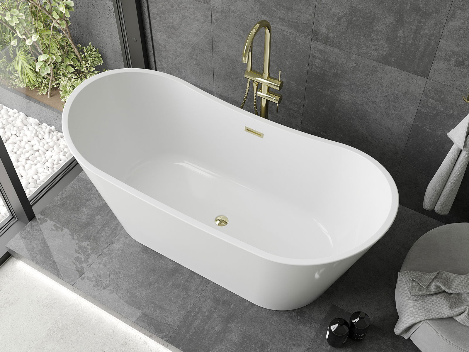 Mexen Montana wanna wolnostojąca 180 x 80 cm, biała, przelew złoty - 52011808000-50