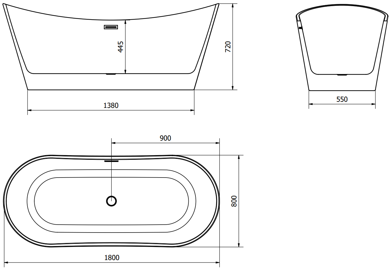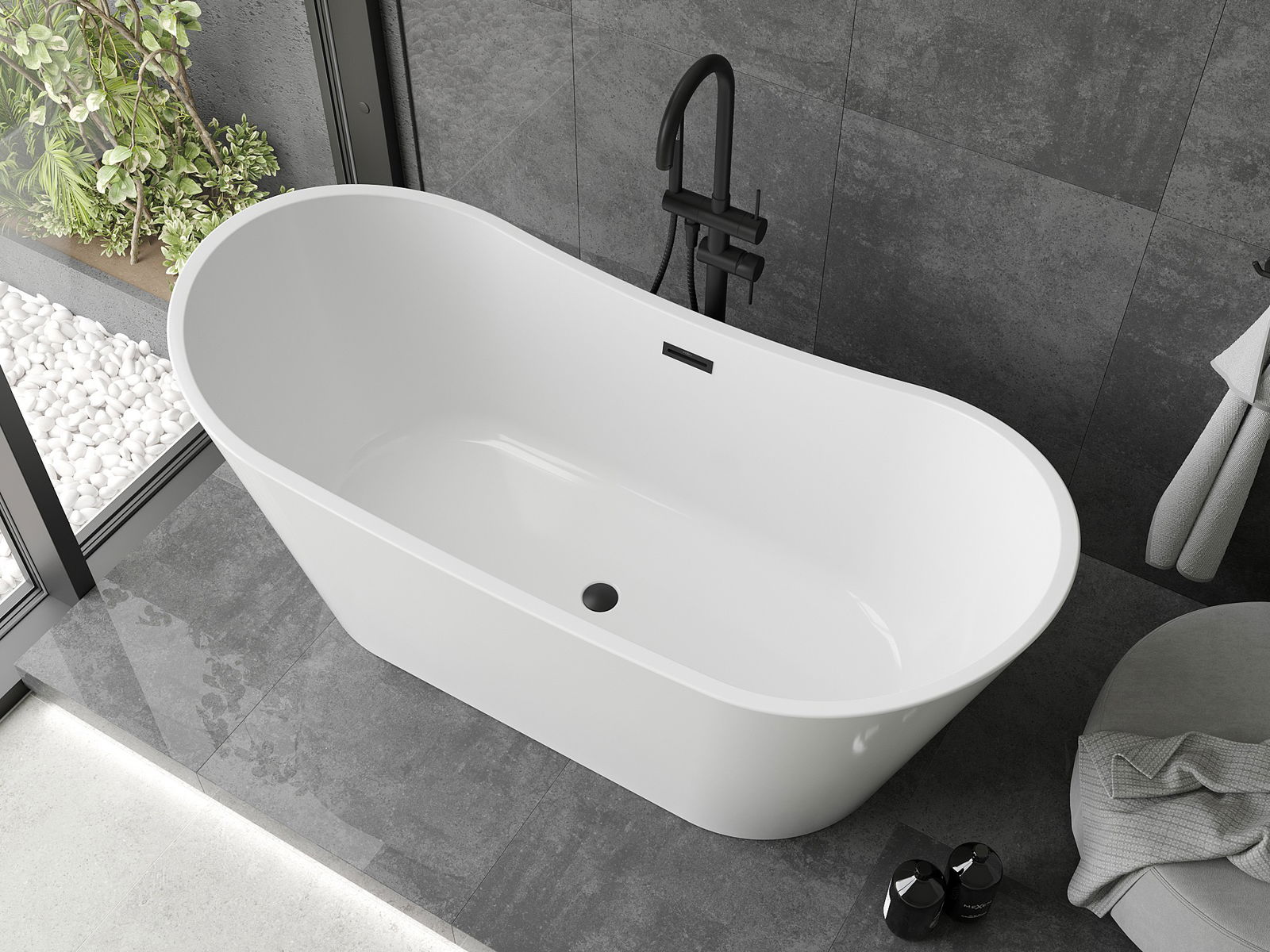 Mexen Montana wanna wolnostojąca 180 x 80 cm, biała, przelew czarny - 52011808000-70