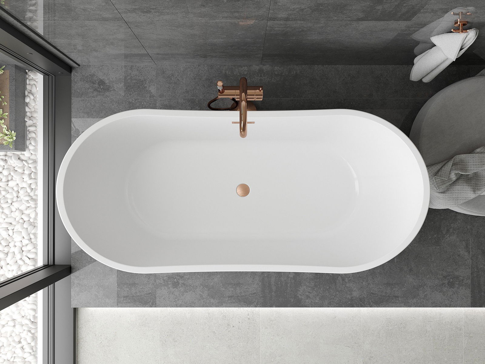 Mexen Montana wanna wolnostojąca 180 x 90 cm, biała/czarna, przelew miedź szczotkowana - 52011809075-65