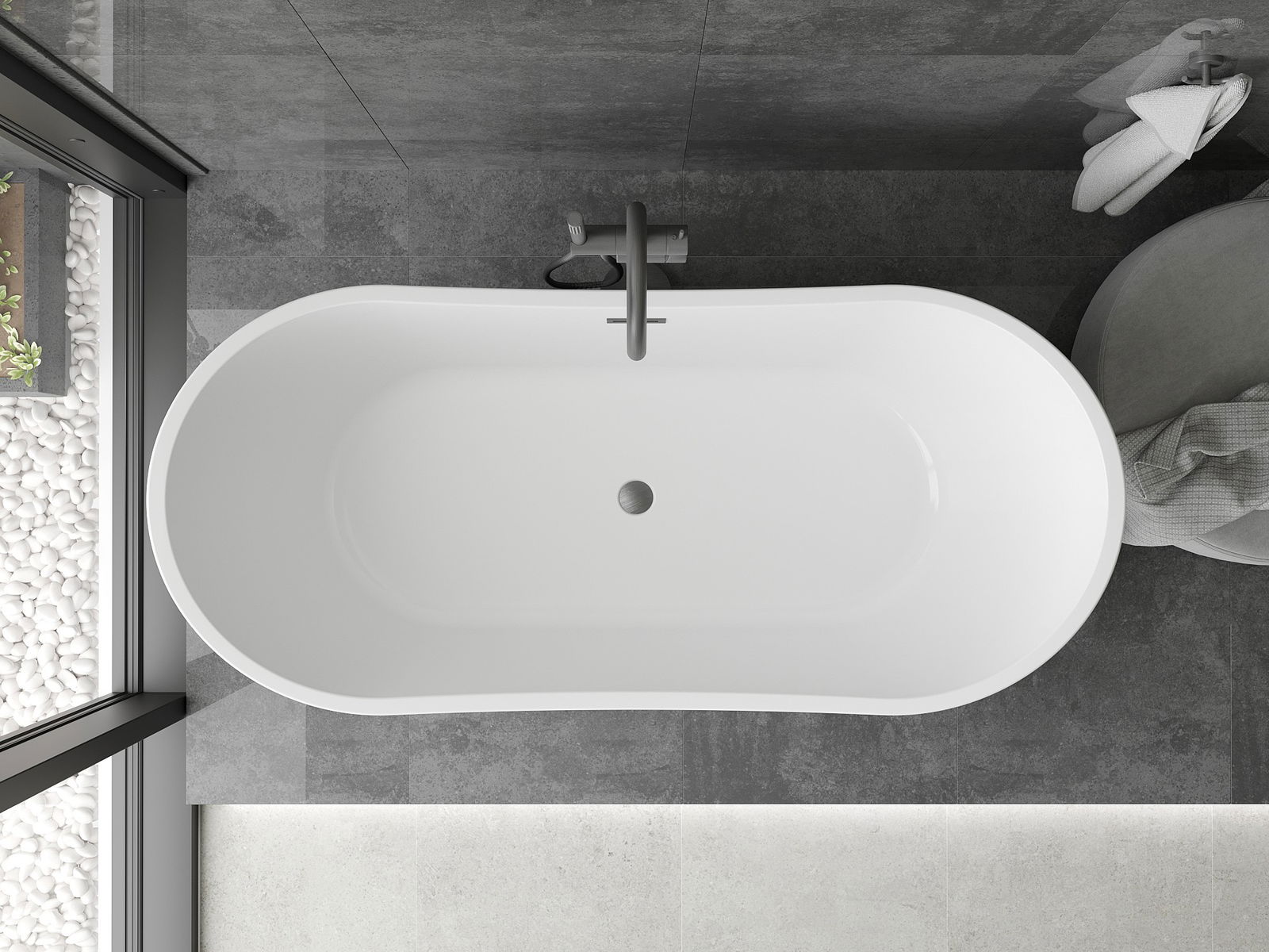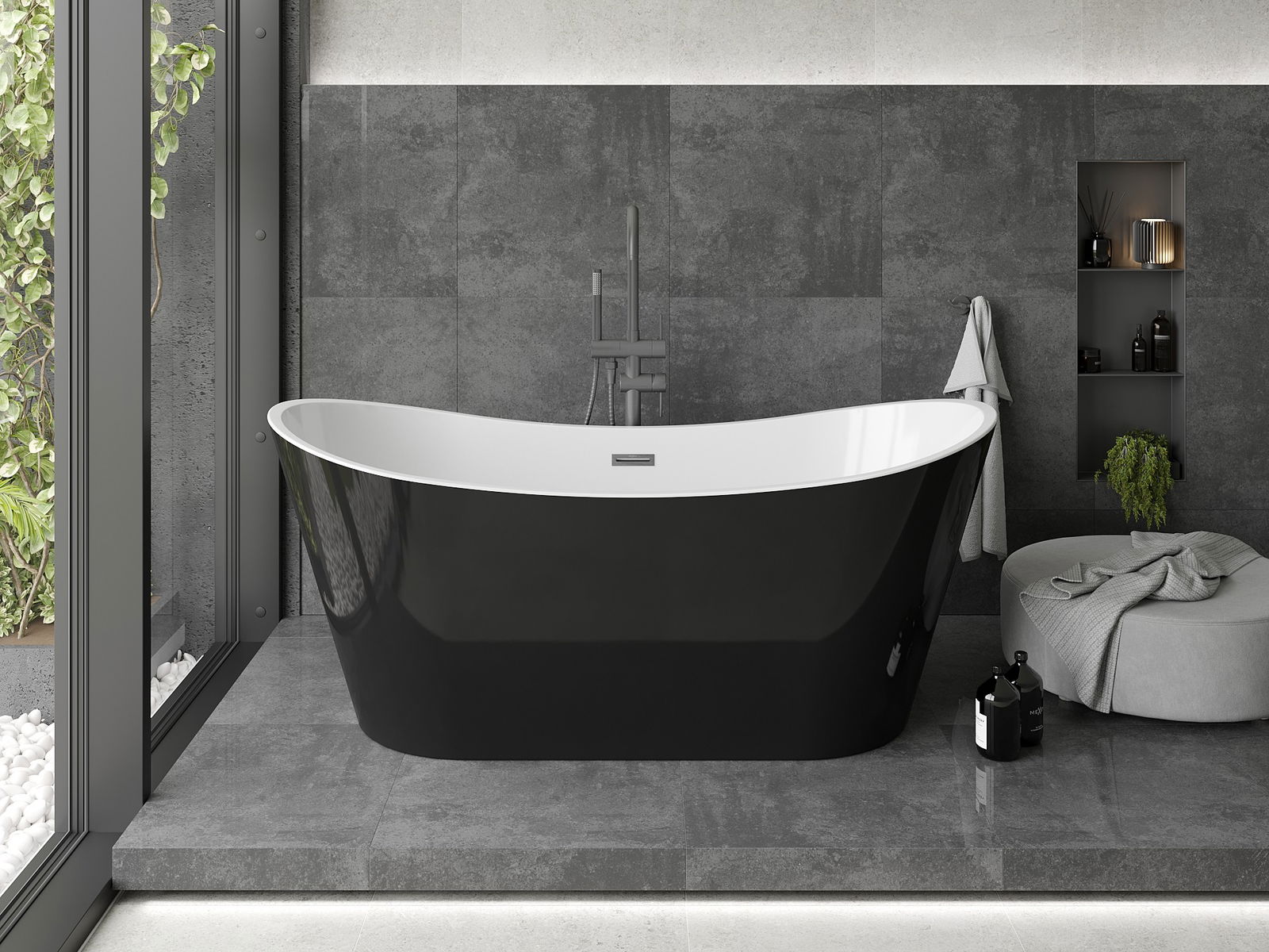 Mexen Montana wanna wolnostojąca 180 x 90 cm, biała/czarna, przelew gun gray szczotkowany - 52011809075-66