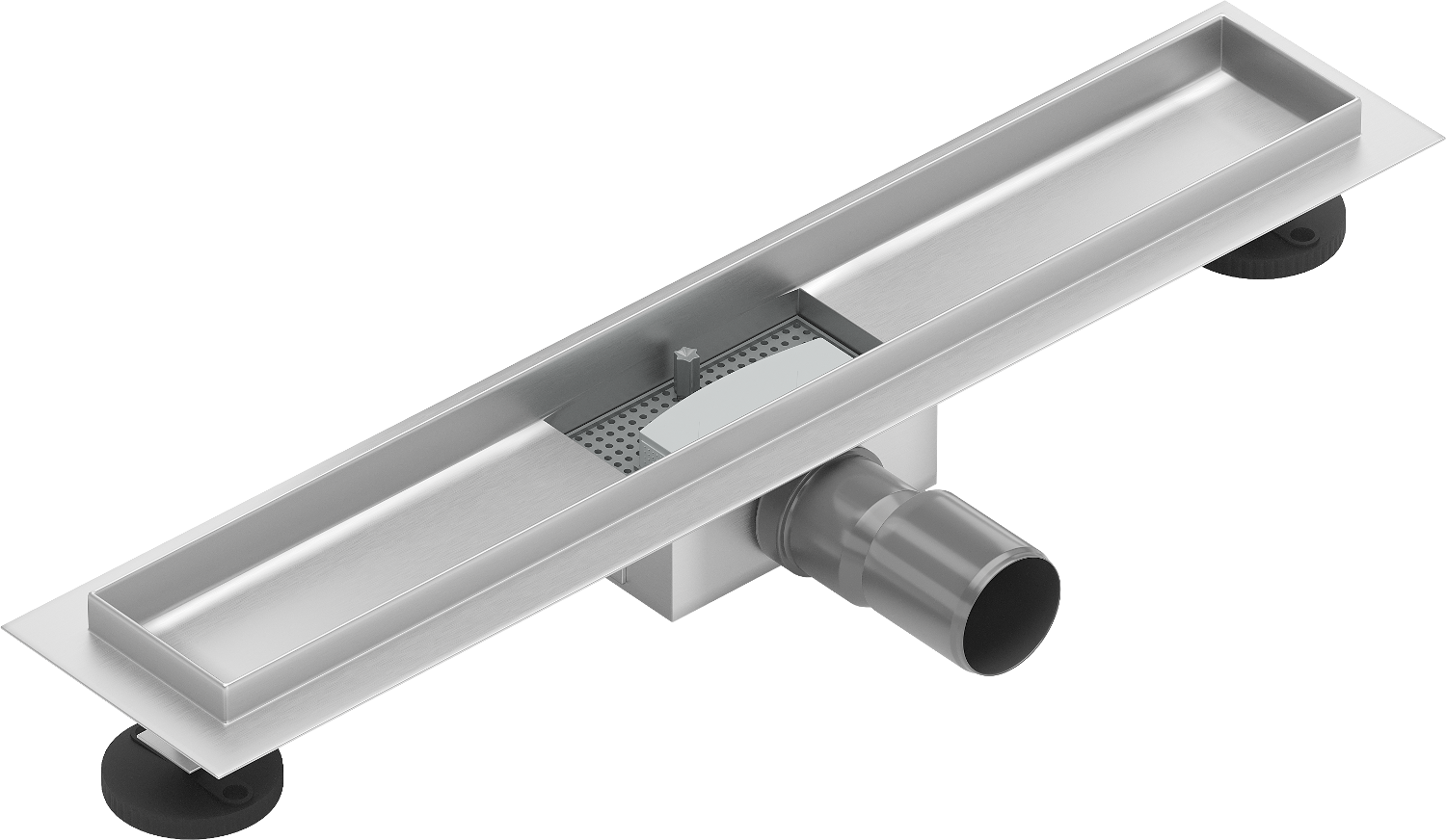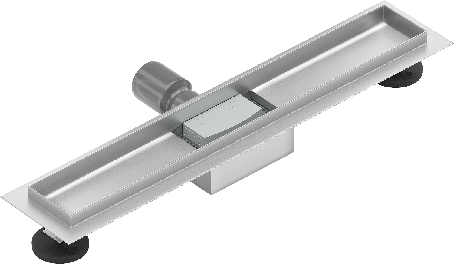 Odpływ jest wyposażony w regulowane nóżki, które umożliwiają dopasowanie odpowiedniej wysokości odpływu oraz wypoziomowanie na nierównej powierzchni. W ten sposób odpływ jest jeszcze lepiej dopasowany do warunków danej łazienki.