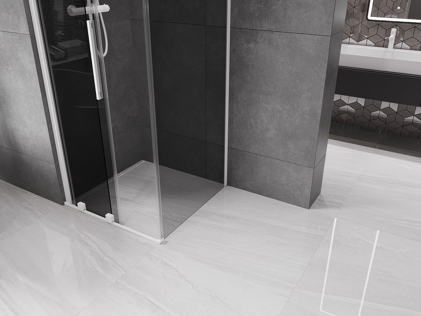 Dzięki zastosowaniu uniwersalnego systemu mocowania, drzwi prysznicowe mogą zostać zamontowane z prawej lub z lewej strony, zależnie od potrzeb. Dzięki temu możesz z łatwością zaprojektować prysznic dopasowany do przestrzeni łazienki.