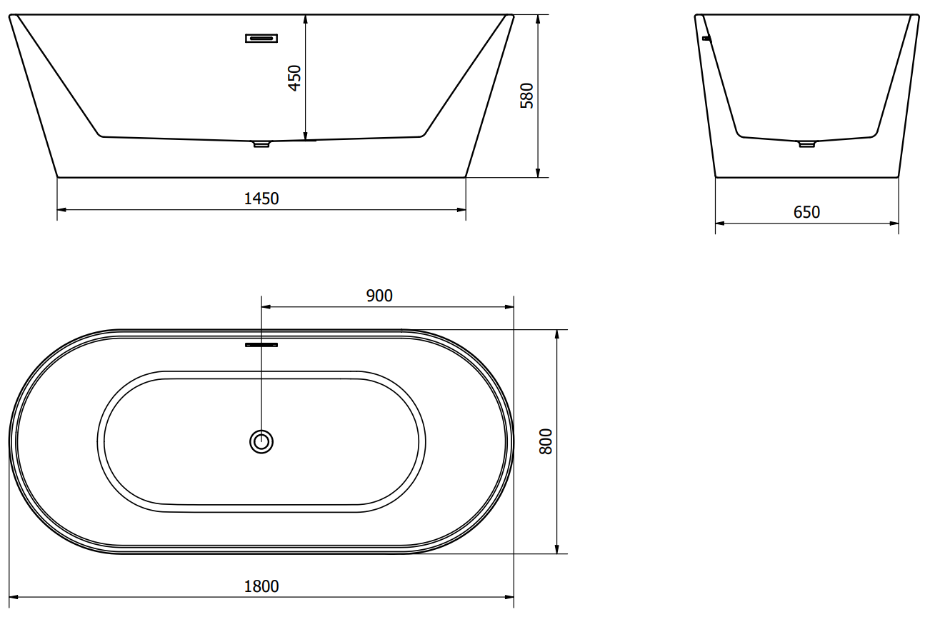 Mexen Luna wanna wolnostojąca 180 x 80 cm, biała, przelew gun metal - 52031808000-95