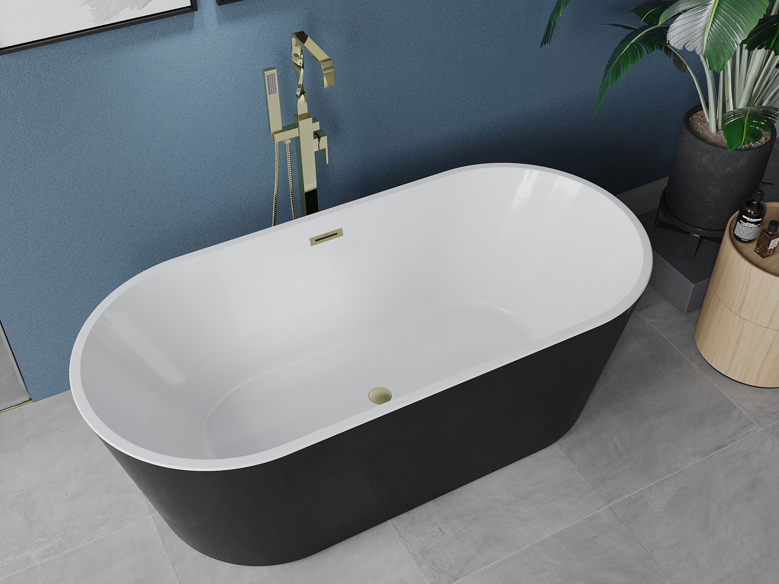 Mexen Luna wanna wolnostojąca 180 x 80 cm, biała/czarna, przelew złoty szczotkowany - 52031808075-55