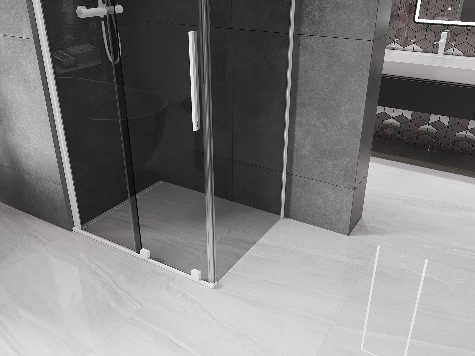 Dzięki zastosowaniu uniwersalnego systemu mocowania, drzwi prysznicowe mogą zostać zamontowane z prawej lub z lewej strony, zależnie od potrzeb. Dzięki temu możesz z łatwością zaprojektować prysznic dopasowany do przestrzeni łazienki.