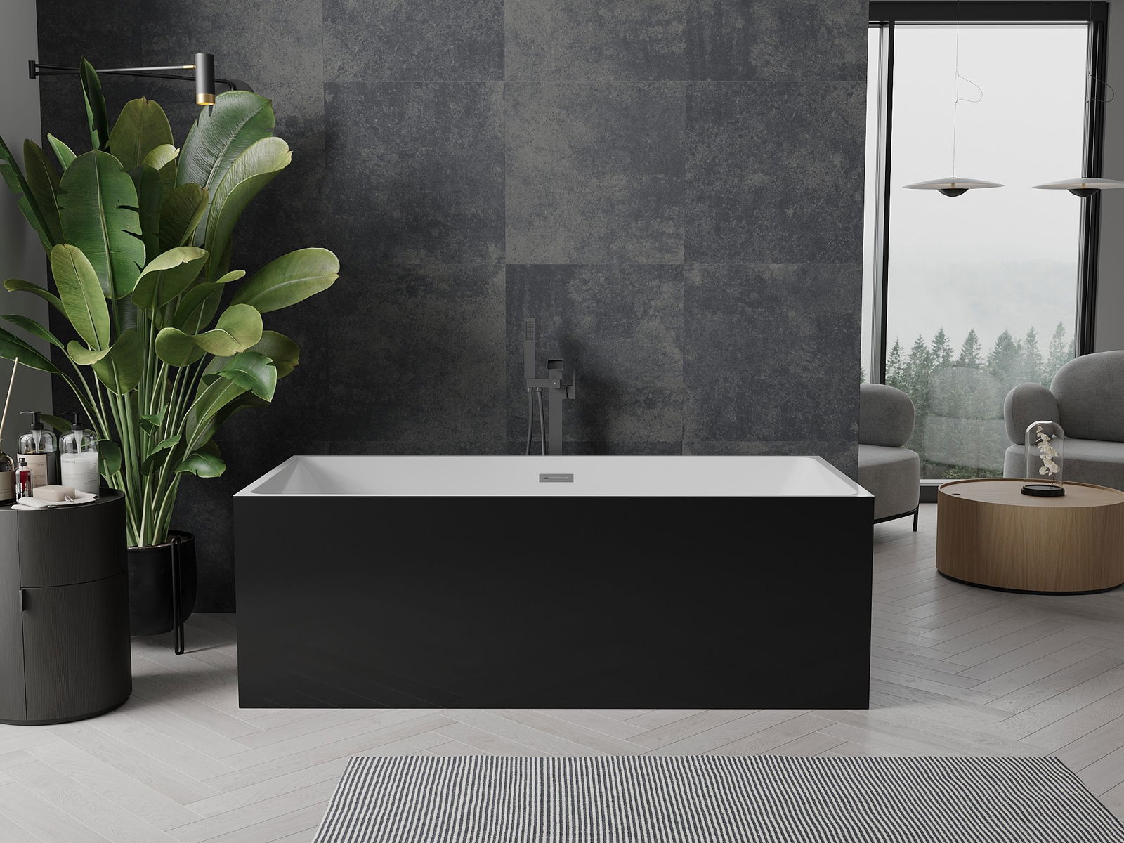 Mexen Nita wanna wolnostojąca 170 x 80 cm, biała/czarna, przelew gun gray szczotkowany - 52091708075-66